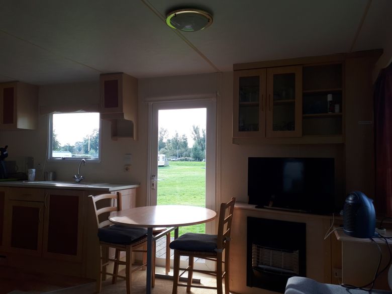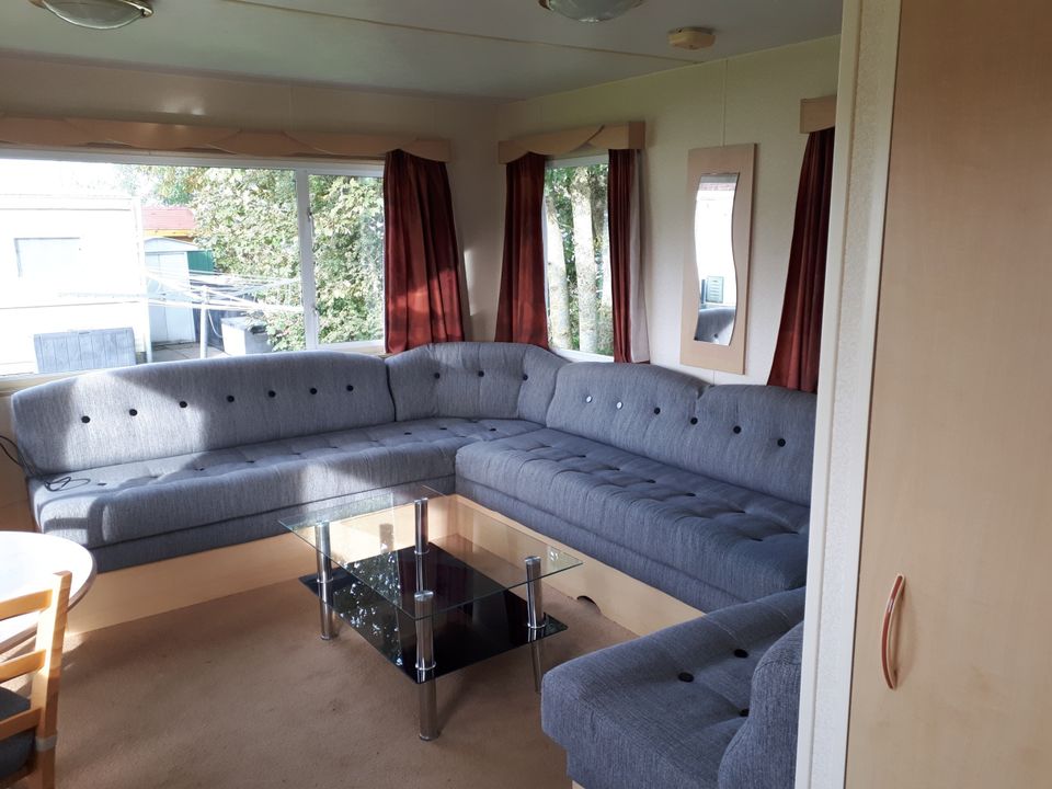 This comfortable mobile home is located on a cozy campsite with a view of the waterway. The mobile home has a spacious living room with a sitting area and an open kitchen with dining area. The kitchen is fully equipped, including a gas stove, refrigerator, microwave, Senseo, kettle, oven and freezer. The caravan has 2 bedrooms and a sofa bed. All beds have pillows and duvets including bed linen. The bathroom has a shower, sink and toilet. The mobile home has hot and cold running water and is connected to the sewer. Next to the mobile home is a shed for bicycles and garden cushions. Outside you can relax on the veranda with garden furniture and a parasol.