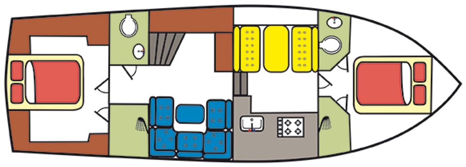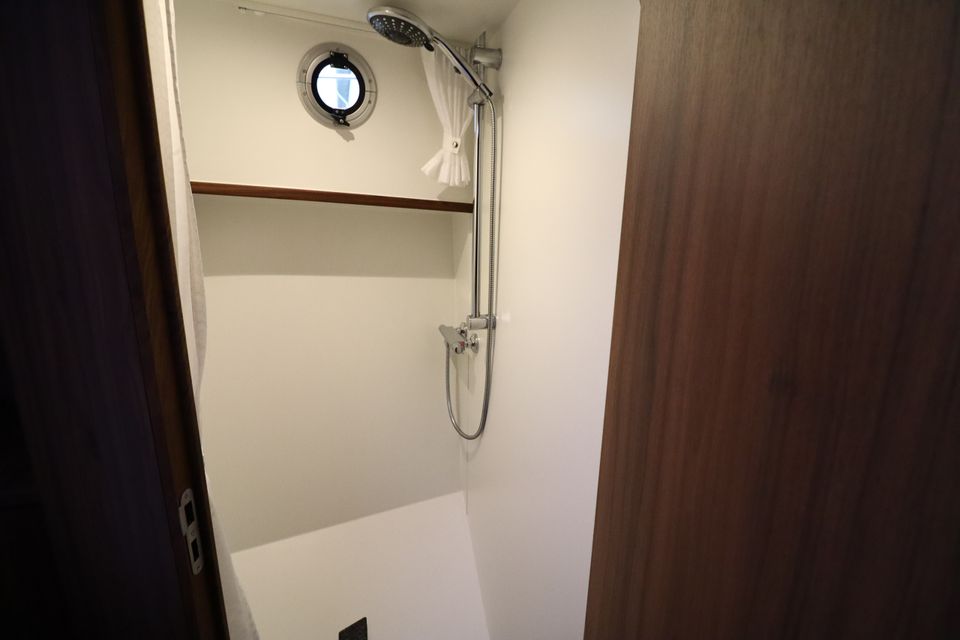 Layout: At the back you will find a spacious master bedroom with its own shower, separate toilet and a handy washer/dryer combination. At the front is a second comfortable cabin with a double bed, also equipped with a separate shower and toilet. The cozy lounge with U-shaped sitting area, television and radio offers plenty of seating comfort. The spacious, modern kitchen is fully equipped for 4 people and has an induction hob with extractor hood, large refrigerator with two freezer compartments, dishwasher, combination microwave, coffee maker and kettle.