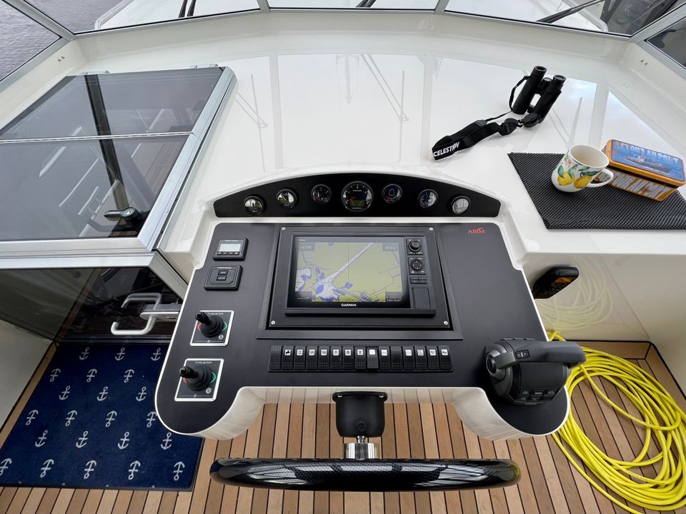 This 2023 motor yacht combines a characteristic hull shape with modern comfort and luxury for 4 people. Thanks to the axe bow, the waterline has been extended, which not only improves the sailing characteristics, but also provides approximately 5 m³ of extra interior space compared to a ship with a traditional bow.