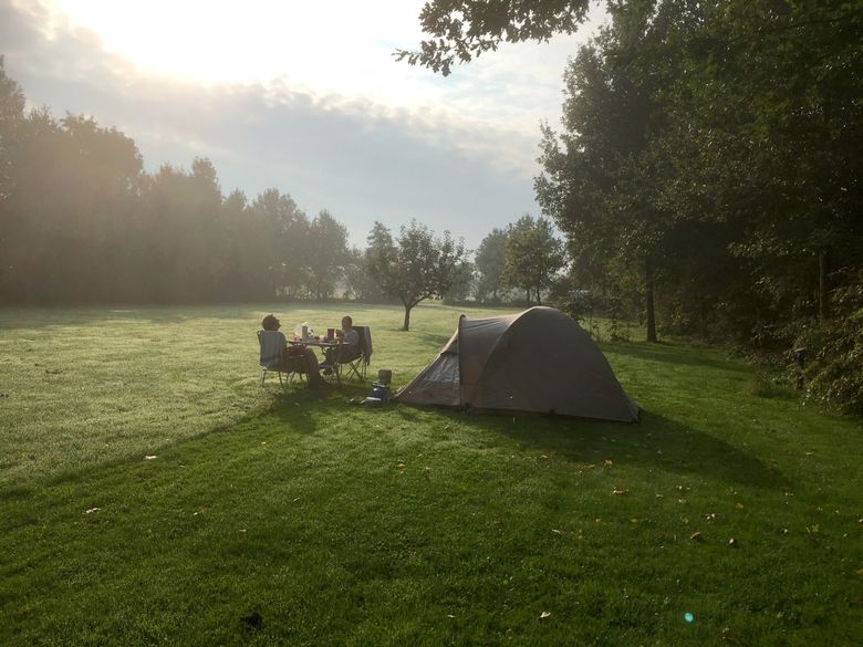 Tent pitches are spread over a simple and neatly furnished terrain in a natural environment. There is a daily opportunity to join in for a cup of coffee. A moment for information about walking or cycling routes, a chat or sharing experiences with other campers.