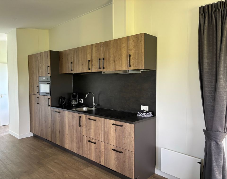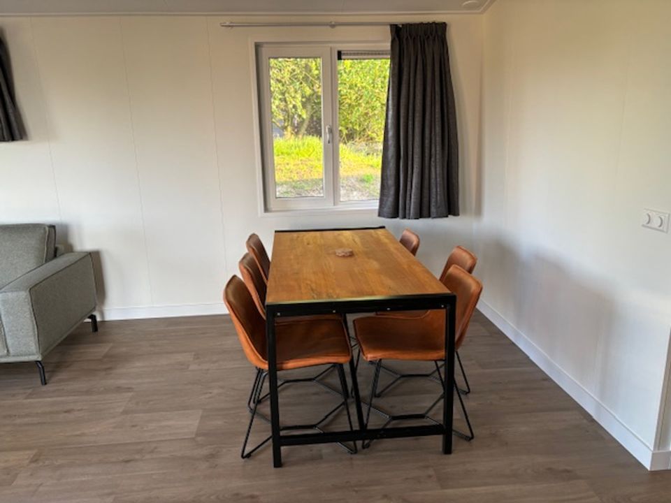 Feel right at home in one of the chalets at the Markestee. With a fixed awning and terrace accessible through French doors, the accommodation offers plenty of space. There are three bedrooms available: one with a double bed, one with two single beds, and a third room with a bunk bed.