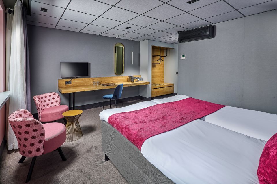 After you have checked in at the reception and walked into the room, you immediately see the comfort and elegance of the hotel room. Immediately upon entering you see the bathroom, it is fully equipped! The room itself is cozy and you will want for nothing during your stay. The two single box-spring beds are comfortable and offer a good night's sleep. The seat with side table is cozy and the desk where you can work is also very nice. When you open the curtains, you look out over the city center of Emmeloord!
