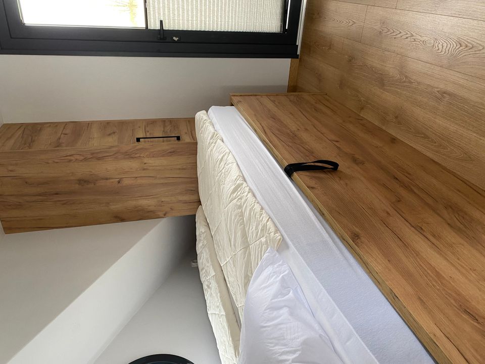 Beautiful luxury Houseboat Chill (Campi 400) with spacious living room with lounge sofa, dining table with 4 chairs and spacious kitchen. Adjacent the bathroom with shower, sink and toilet. 2 bedrooms with 140x200 bed and cupboard space. The master bedroom has a door to the aft deck. On the upper deck is a lounger (140x200) and chairs.