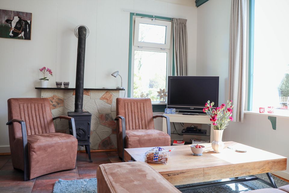 This cozy detached holiday home is located on the grounds of a farm, so you can optimally enjoy peace and space and have a beautiful view over the meadows. The house has a cozy veranda and outdoor area with play facilities for children. On the ground floor there is a spacious living and dining room as well as the sufficiently equipped kitchen. This has a dishwasher and microwave, among other things. On the ground floor there is also the bathroom with shower, toilet and sink, and a first bedroom. This has a comfortable double bed. Via the stairs in the living room you reach the first floor with a large dormer window, here is the second sleeping area with a double bed and two single beds. The space between the sleeping areas is separated by cowboy folding doors. There is also a cot here, this can also be taken down on request. Due to the spacious dormer window there is sufficient standing height and you can enjoy a beautiful view!