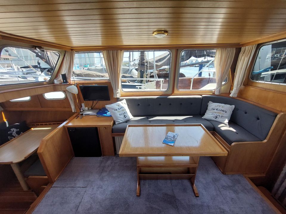 The Bruhas cutter named Ichtus, size: 11.70 x 4 x 1.30 meters, is a beautiful ship with 5 berths. This cutter has a bow thruster, double steering, spacious aft deck, toilet, shower, spacious owner's cabin and generator. In short, fully equipped so that you can enjoy a relaxing holiday.