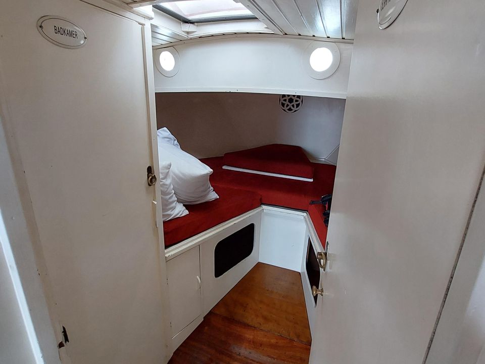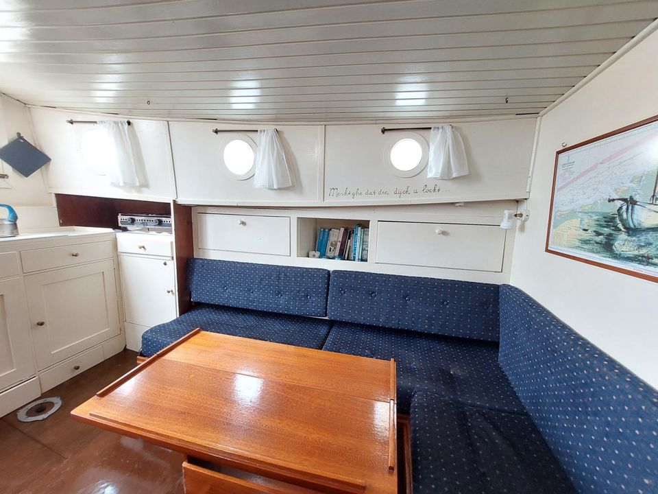Step aboard the beautiful family Zeeschouw with a spacious cockpit. It is very cozy on board the Catharina. In the front are two spacious berths. By means of a connecting piece, it becomes a spacious three-person sleeping place. There are two large sofa beds in the cabin. There is also a kitchen with refrigerator, stove, heating and toilet on board. The ship is easy to sail and in addition to a normal jib, it also has a jib and butter jib.