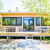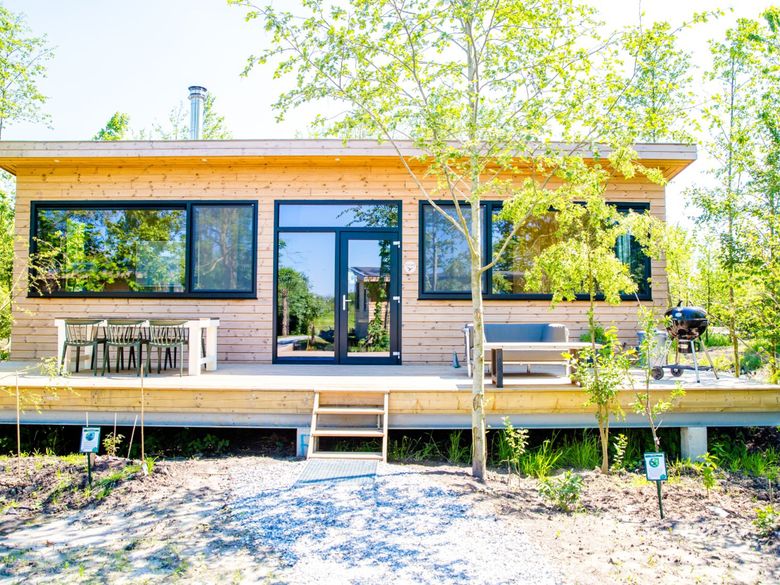 You enter this water lodge through the veranda. The living space is raised so that you can look over the water. There is a round dining table between the kitchen and the living room. There are two bedrooms, one with two single beds that you can put together and a double bed. The beds have single duvets with a pillow and a protective cover. There is also a spacious bathroom with a shower, sink, toilet and a bathtub. On the veranda there is a table where you can eat when the weather is nice and another sitting area.