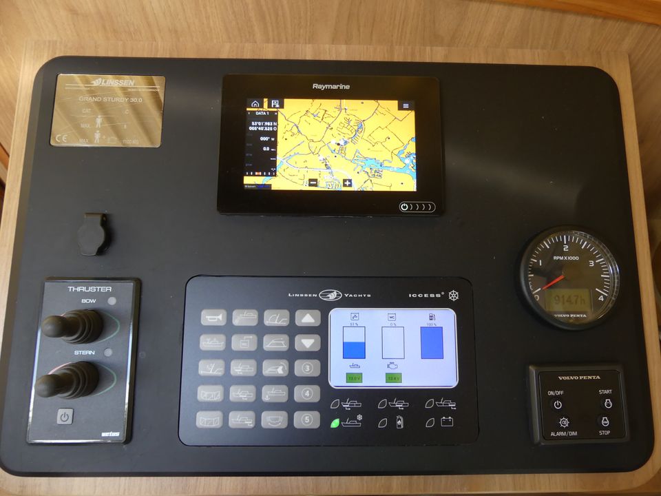 You can rent this luxurious and fully equipped motorboat from Sneek. An ideal yacht for sailing on the Frisian lakes, with her low headroom (2.40 meters) you can reach the most beautiful destinations. This ship is suitable for 2 persons. This Linssen Grand Sturdy 30.0 Sedan has many well thought-out details, including an electrically adjustable Variodeck sliding roof, heated and lockable cockpit. Stylish salon with lots of (day) light finished in beautiful light colors. Very extensive steering and navigation system and bow and stern thruster. Spacious owner's cabin with a wonderful bed and separate shower and sanitary room.