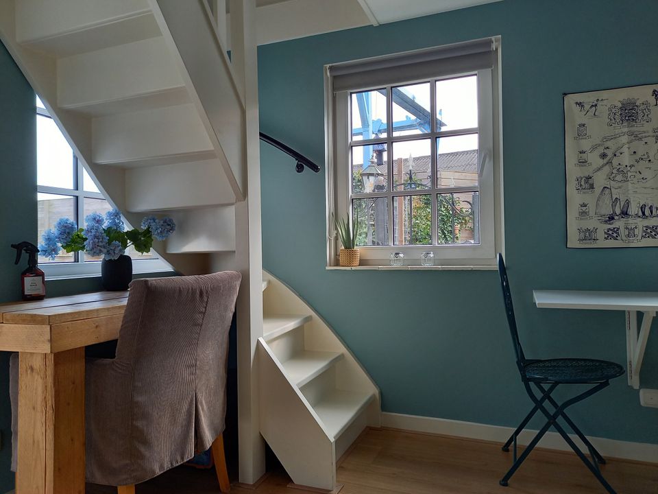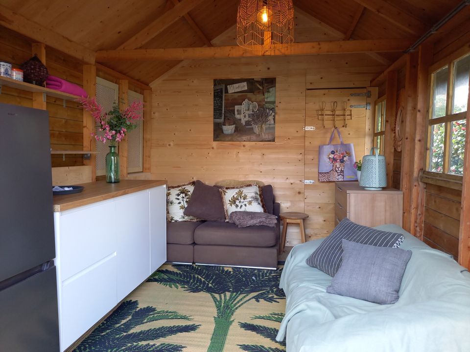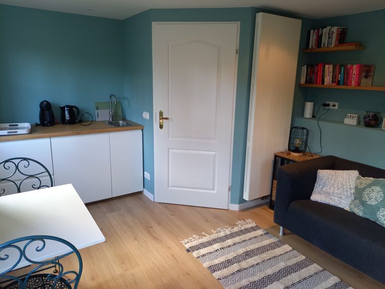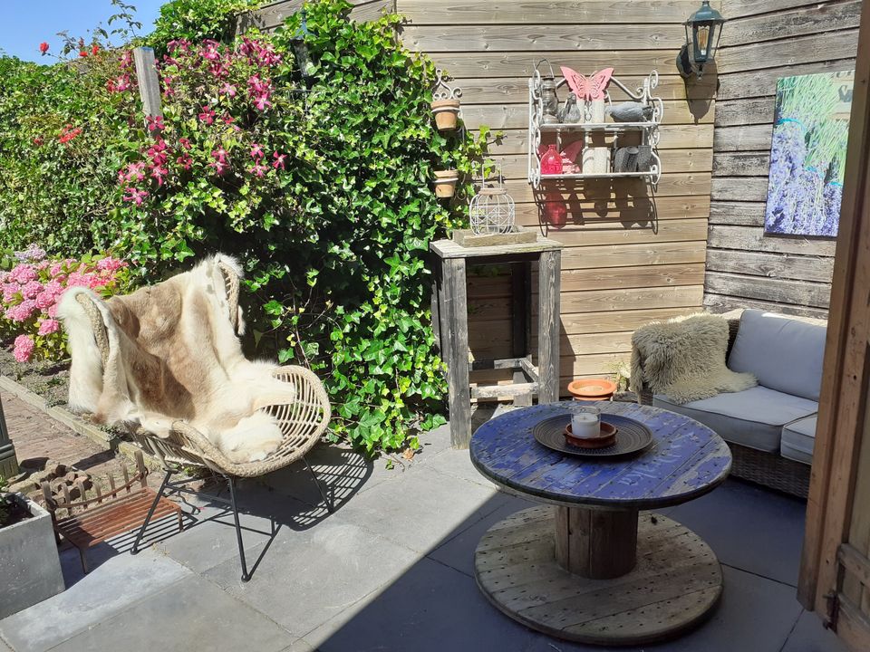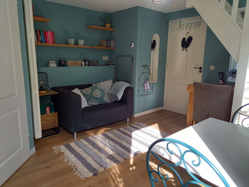 This cosy, cozy cottage is an extension next to the 'big' house. You enter the living room through your own entrance, here is a sitting and dining area as well as the kitchen unit. There is also a bathroom with toilet and shower on the ground floor. Upstairs, in the loft, is the bedroom. Here is a comfortable bed, as well as a TV. From the cottage you step straight into the garden with a veranda in the barn, here is a sofa bed where children can sleep. In addition to the veranda, you can also sit on the terrace, which is shared with the residents of the house, you can also use the barbecue that is located here!