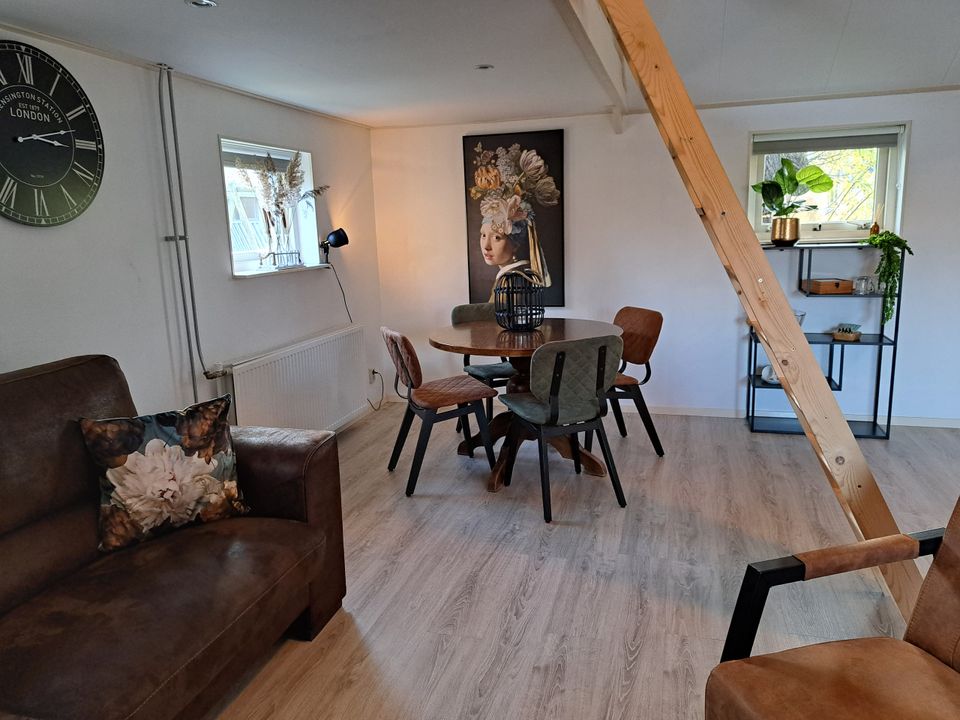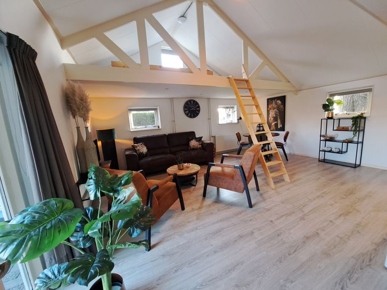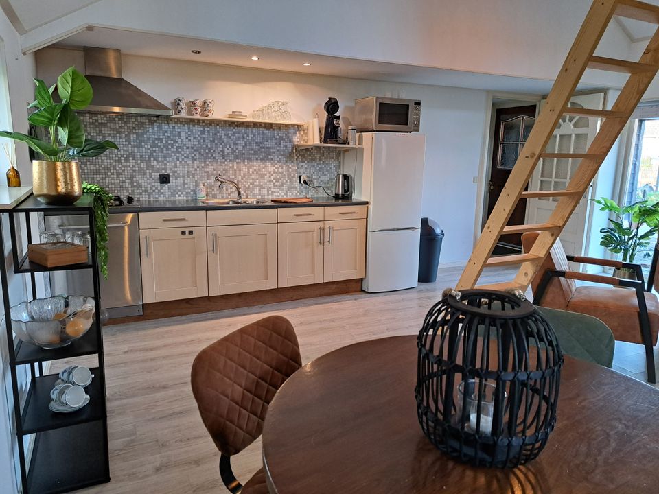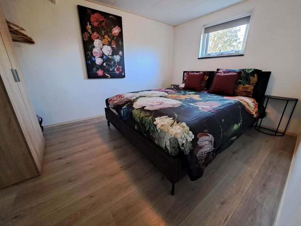 This apartment is located on the water, so in the summer you can enjoy the boats sailing by from the terrace! At the campsite you also have the option to rent a boat yourself and explore the area from the water. The apartment has a spacious living area with dining table, sofa and fully equipped kitchen. The kitchen is equipped with a dishwasher, gas stove and large refrigerator with freezer. There are two sleeping areas, the first bedroom on the ground floor has a comfortable double bed. The second bedroom is on the mezzanine and can be reached from the living room by stairs. There are two single beds here. You also have your own bathroom at your disposal, equipped with a shower, toilet and sink.