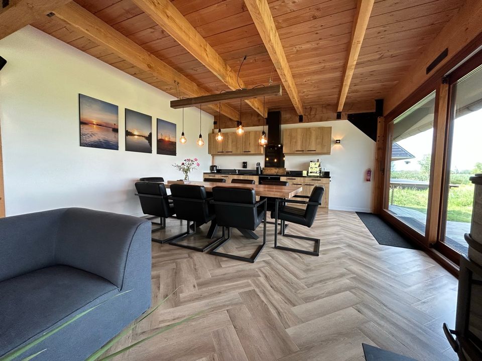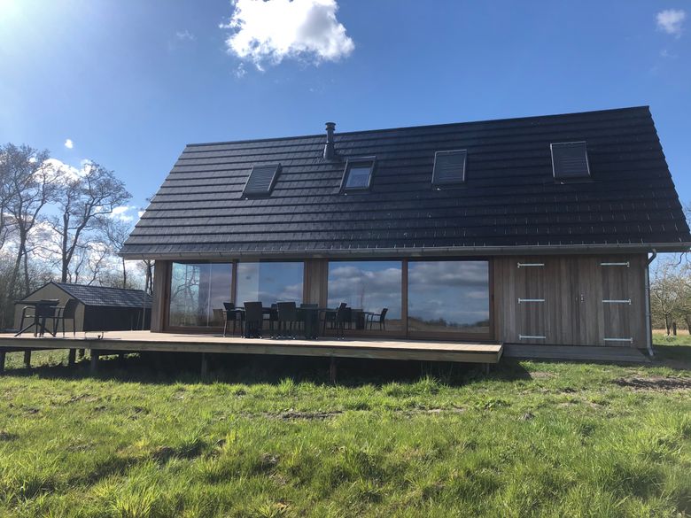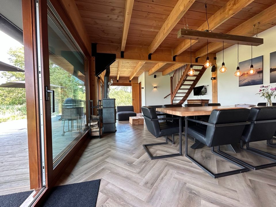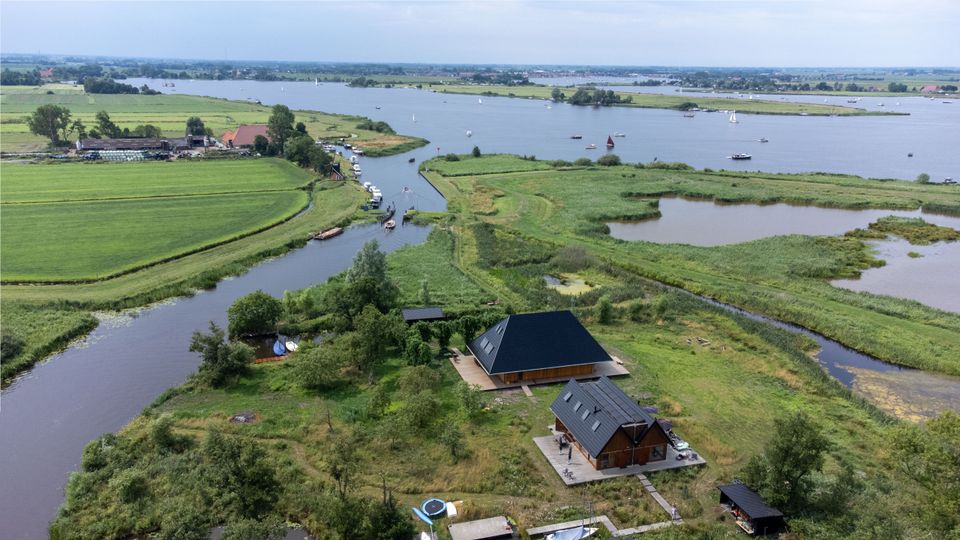 This beautiful home is located on a private island. You park your car, step aboard the electric sloop and sail straight to the house! This modern house is fully equipped and has a spacious living room with a beautiful view over the Âlde Feanen National Park. The living area includes a seating area situated around a soapstone stove. There is a dining area and a nice kitchen, which is fully equipped and includes an oven, refrigerator and a Takumi barbecue outside. There are four bedrooms with a total of room for seven people. The bedrooms contain either double beds or two single beds. There is also a bedroom with a double bed and a single bed. The bathrooms have a shower, toilet and sink. There is also a separate toilet in the house.