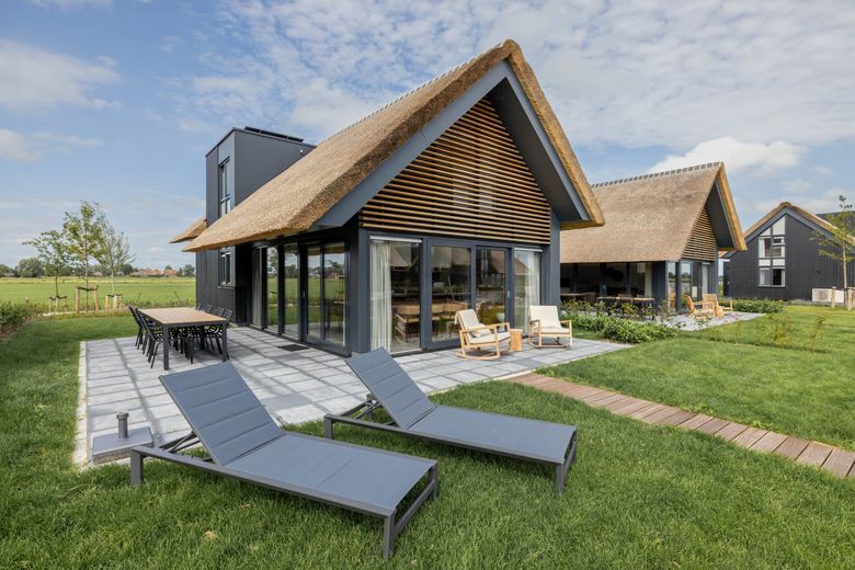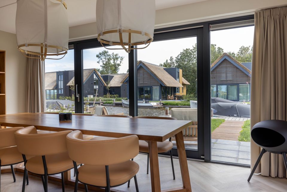 These brand new villas at Park Wetterhaghe are suitable for 8 people. The villas have four bedrooms, one on the ground floor and one with two smaller beds (80x190cm). There are two bathrooms, one of which is on the ground floor and has an additional sauna or bath. During your stay you will have a fully equipped kitchen, a beautifully furnished living room and a lovely lawn with garden furniture. The villas are located on the water with their own mooring, and there are also 8-person e-sloops available at the villa. The ideal place to go out on a boat!