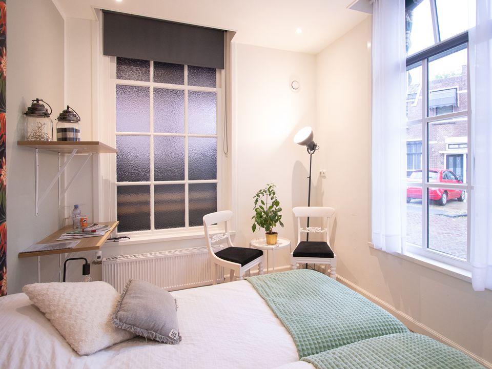 In this charming building, located just behind the city canal on the edge of the center of Sneek, there is an atmospheric Bed & Breakfast apartment on the ground floor. This recently built room is stylishly furnished and has a double bed (or two single beds) and a private bathroom with shower, sink and toilet. In front of the house you can relax with a cup of coffee or a glass of wine on a small terrace area. Do you want to stay with a third, fourth or fifth person? Then inquire about the possibility of renting the entire floor, including kitchenette and a cozy living room.
