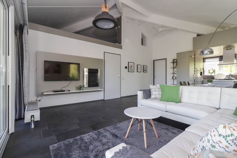 You can enjoy a relaxing holiday in this detached 4-person bungalow. The spacious living room has a cozy sitting area with large flat screen TV and bio-ethanol fireplace. At the front of the living room is a luxurious open kitchen with its own bar. This way you can keep the cook of the day company while cooking. The spacious garden with terrace and private jetty can be reached through two patio doors. You can sit here until the late evening hours. There are two bedrooms in total, the first bedroom has a double box spring. The other room has two separate box-spring beds. Both equally comfortable, of course. In the bathroom you can freshen up or relax completely. This has a nice steam shower cabin and Whirlpool.