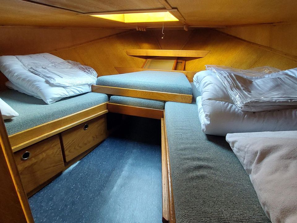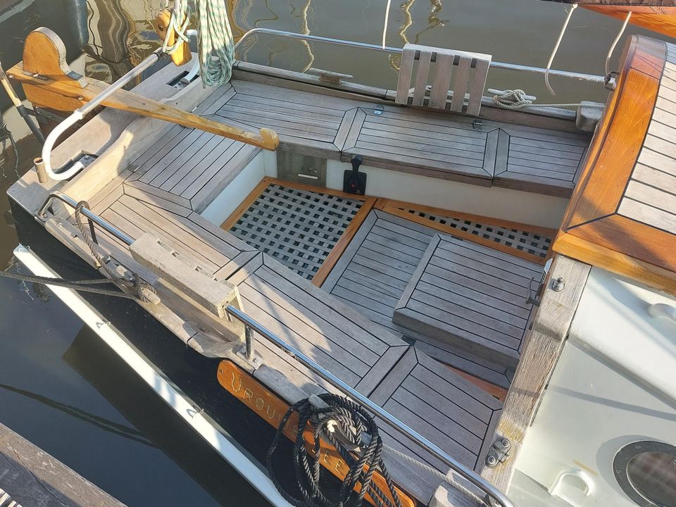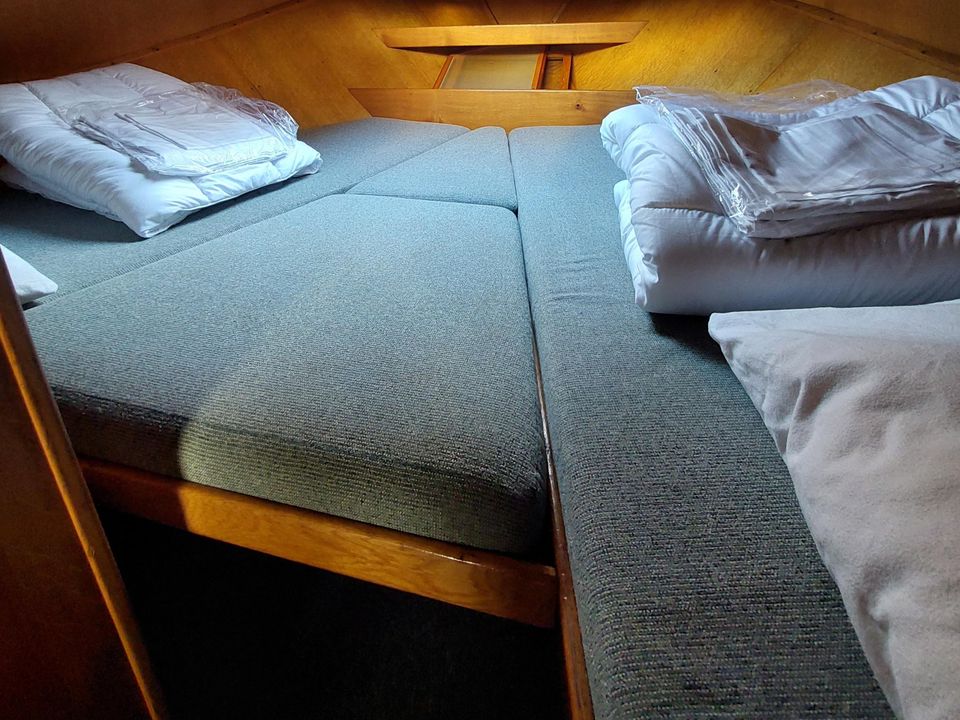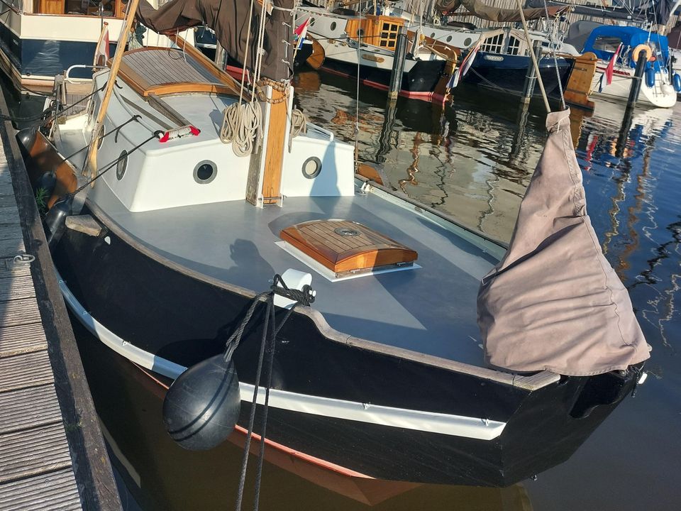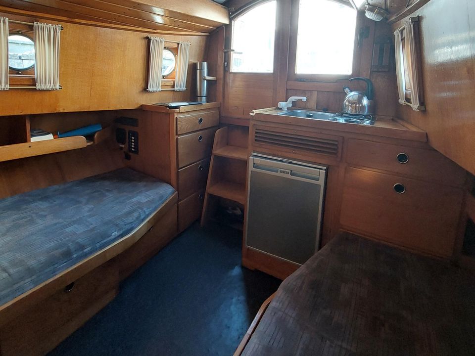 Step aboard this small sea fireplace which is cozy and attractively furnished and paneled with light oak. The cabin has a galley with a sink, a 2-burner stove and refrigerator. There is also sufficient storage space and a long sofa of 1.90 meters that is suitable as a sleeping place. There are two beds in the front. These can be connected to each other by means of a cuddly board to form a large sleeping place, so that a child can also sleep with it. The ship sails very stable and easy. The ship is extremely suitable as a boarding boat from a falcon to a flat bottom.