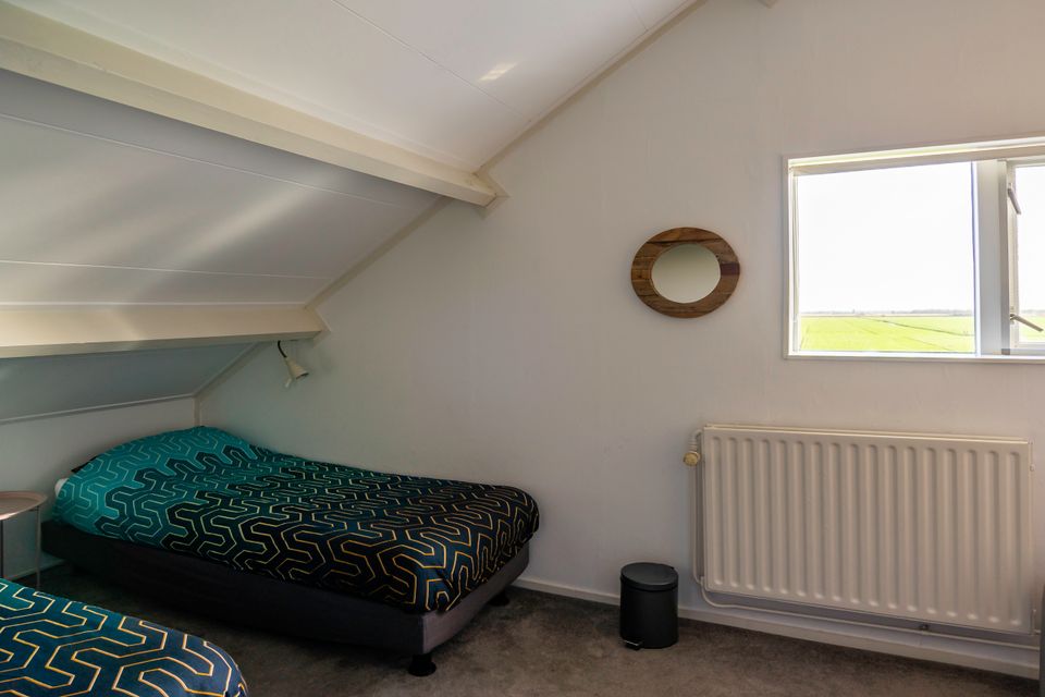 Via the screened terrace, with a large table, lounge set and wood-fired sauna, you step through a small stone staircase through the front door of the Landzicht holiday home. The name of this holiday home also immediately reveals the view from the house, you look out over the countryside with the village of Balk in the background. The living space has a cozy living room and a kitchen. The living room is equipped with a comfortable sitting area and there is a lounge area for children. Extensive cooking and dining is done in the kitchen, which is fully equipped. The kitchen is equipped with an induction hob, dishwasher and oven, among other things. The first bedroom has been realized in the upstairs room (between floor). This has a double bed and a bunk bed. Has its own shower cabin and patio doors to a small balcony. Via a spiral staircase you reach the first floor where there are two more bedrooms and a bathroom. One bedroom has two single beds and the other bedroom has three single beds. In the bathroom you will find a bath, shower, sink and second toilet.