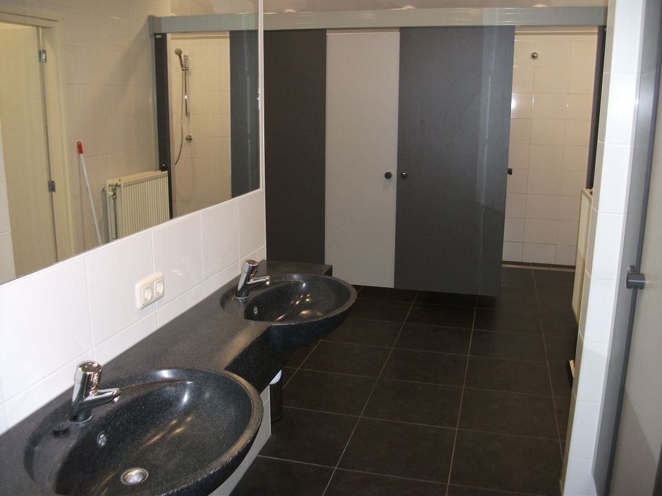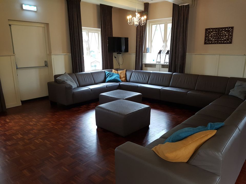 This beautiful thatched group accommodation is suitable for groups of up to 50 people. When entering the hall you can go in three directions, when you go to the right you enter the sanitary room with toilets and showers through the corridor. If you go to the left from the hall, you enter a large living room with dining and sitting area. You enter the professional kitchen through this living space. Here you can use a fast dishwasher, 6-burner stove, double refrigerator and so on. In total, 't Reidtèk consists of 14 bedrooms. Six bedrooms are furnished with comfortable box-spring beds and are suitable for two people. Seven bedrooms are furnished with bunk beds, which are suitable for four people. Finally, there is another large bedroom that can sleep 10 people. In front of the entrance of the accommodation is a spacious terrace with various picnic tables and seating areas. There is also a sports field, large playground, indoor playground and petting zoo on the site!