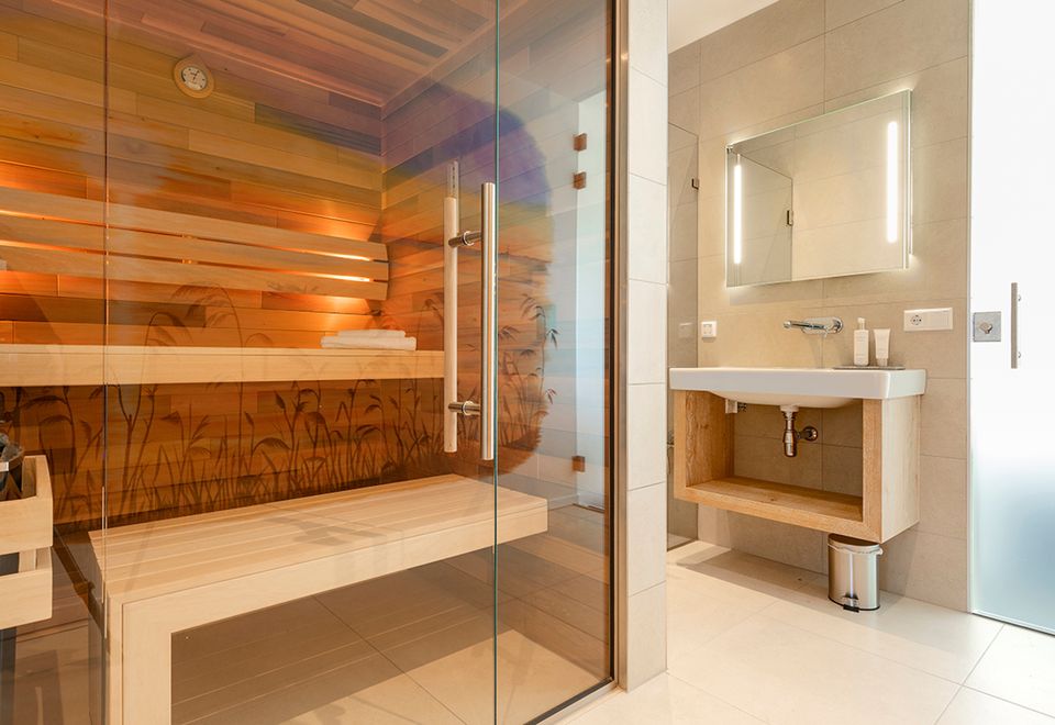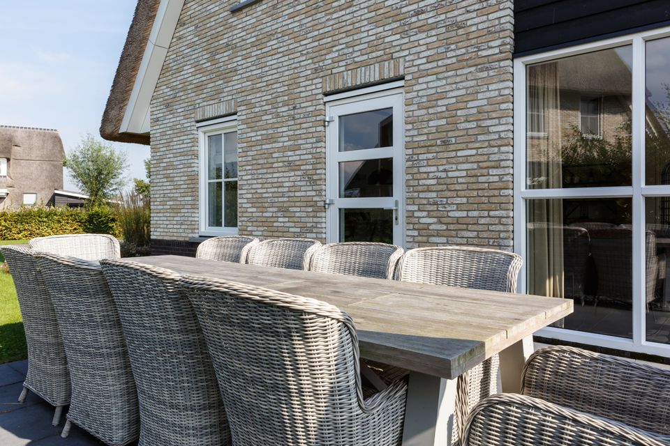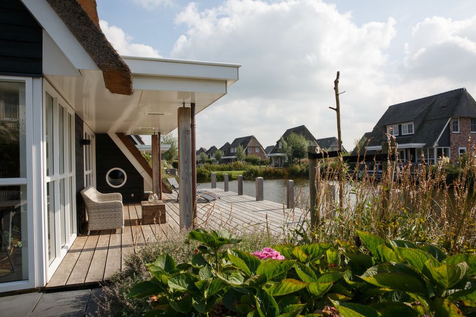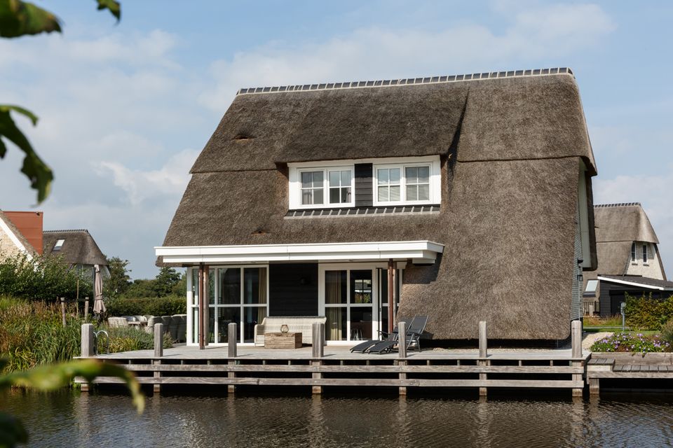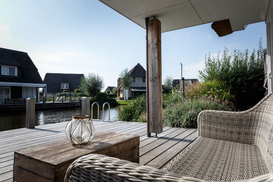 This tastefully decorated waterfront villa has a spacious living room with a comfortable seating area. From the living room, with sliding door, you can step onto the deck terrace with a beautiful view over the water. The spacious kitchen is fully equipped with a long dining table for the entire group. On the ground floor there is also a bedroom with two single beds and a bathroom with a spacious Finnish sauna. You reach the first floor via the stairs in the hall. Here are three bedrooms with single box-spring beds and a double box bed. Each room has a smart TV and ample closet space. There are also three bathrooms, one of which has a bathtub and a separate toilet. For extra comfort there is a laundry room with washing machine, tumble dryer and extra fridge.