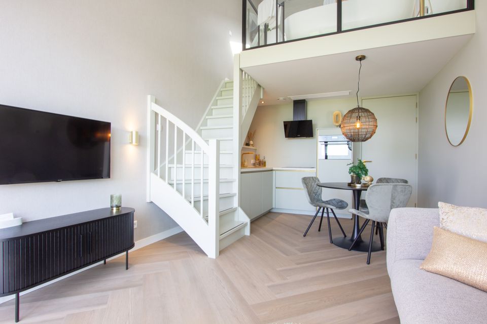 Apartment Goud is stylishly and comfortably furnished, with a spacious living room, luxury bathroom, fully equipped kitchen and a separate bedroom with double bed. Outside there is a private terrace with a view of the garden - perfect for enjoying the Frisian landscape in peace.