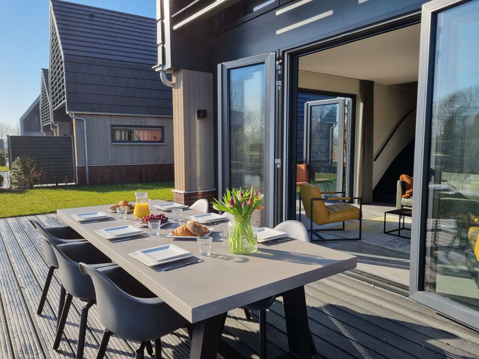 Wettervilla Tolve is located on a small-scale park which is directly connected to the Frisian Lakes. From your (rented) boat you can easily discover Friesland from the water. You can moor this boat at your own jetty in the garden. The house itself is spacious with a nice living and dining area. The kitchen is practical and well equipped. There are four bedrooms in this house, each suitable for two people. On the ground floor there is a bedroom with en-suite bathroom. The other bedrooms are on the first floor and one of these bedrooms is especially suitable for children, because of the bunk bed. There are also two bathrooms and a separate toilet on this floor.