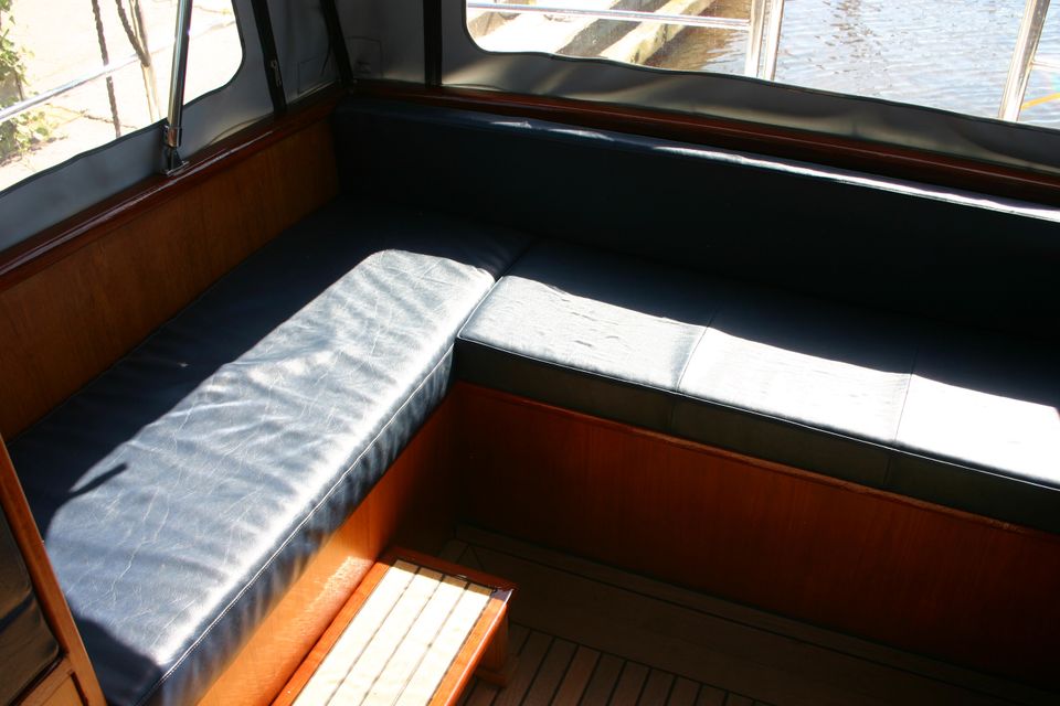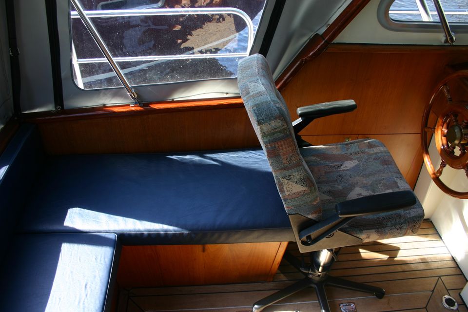 Outside you will find a large open cockpit with convertible hood, steering position, GPS chart plotter, heating, a cosy sitting area, a second refrigerator and a solar panel. The swimming platform is equipped with a swimming ladder and an outdoor shower - ideal for a refreshing dip.