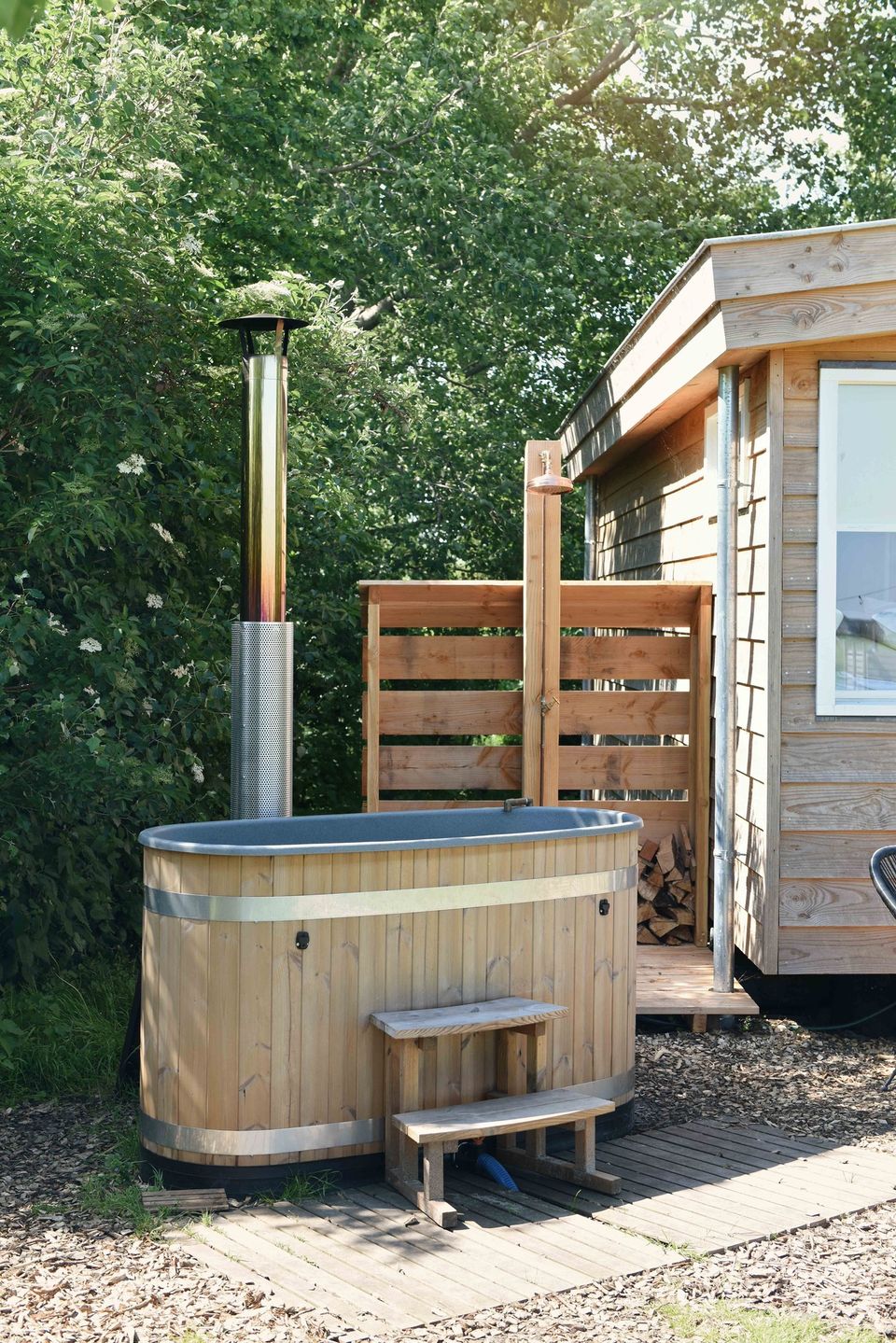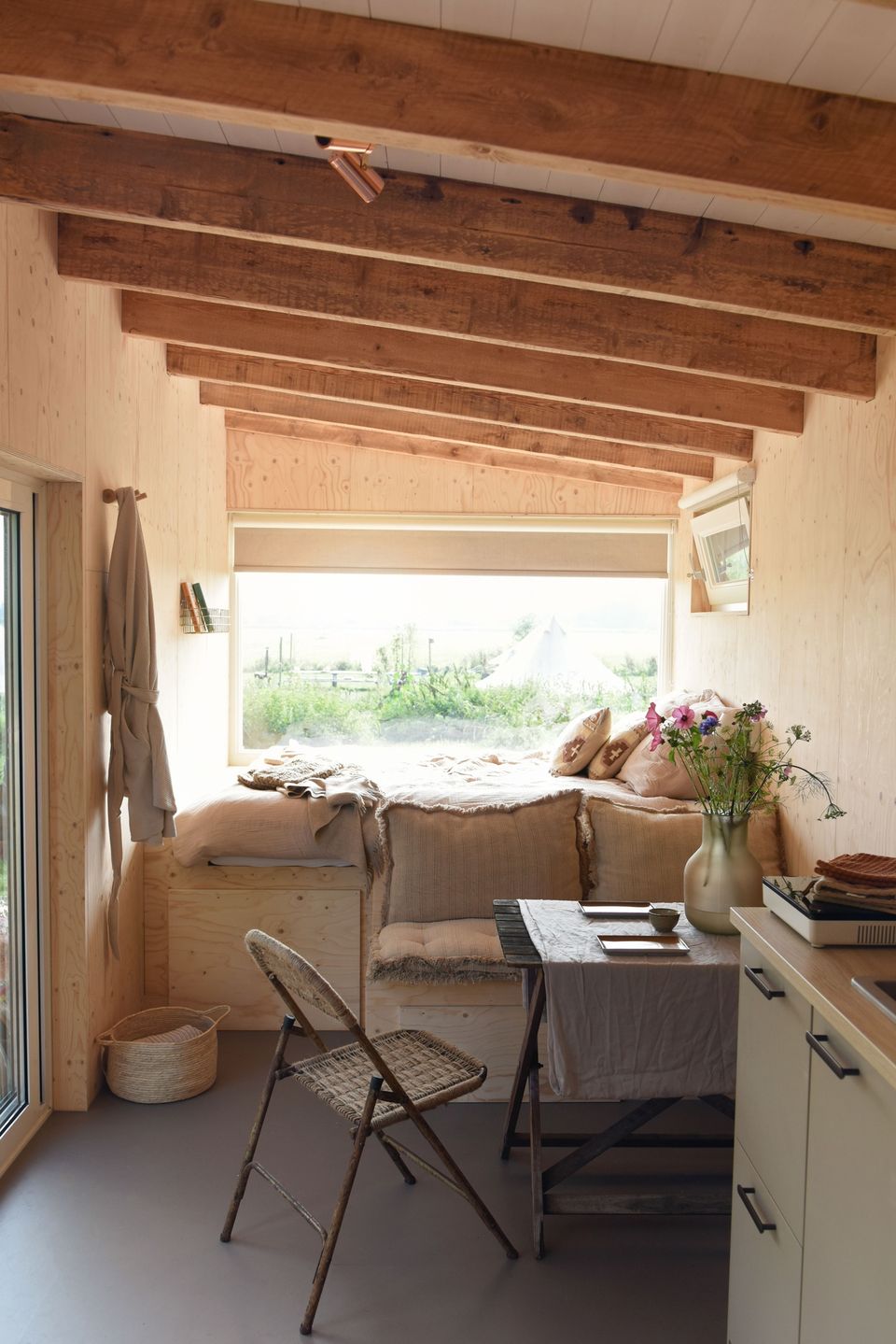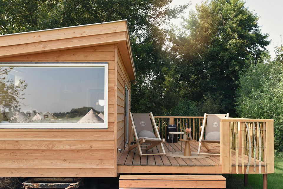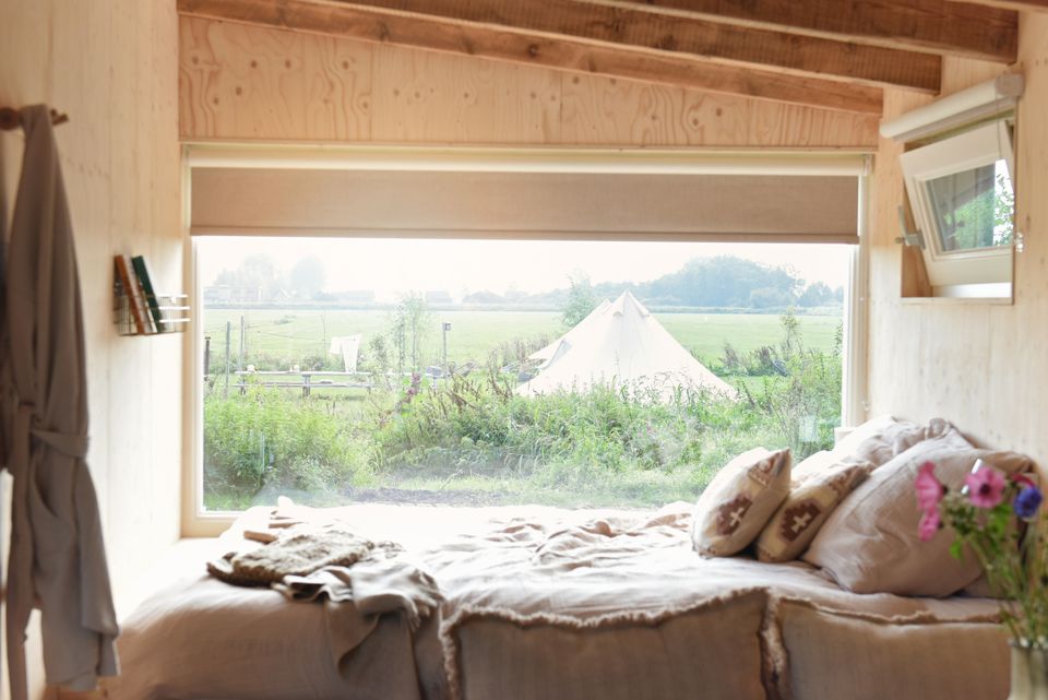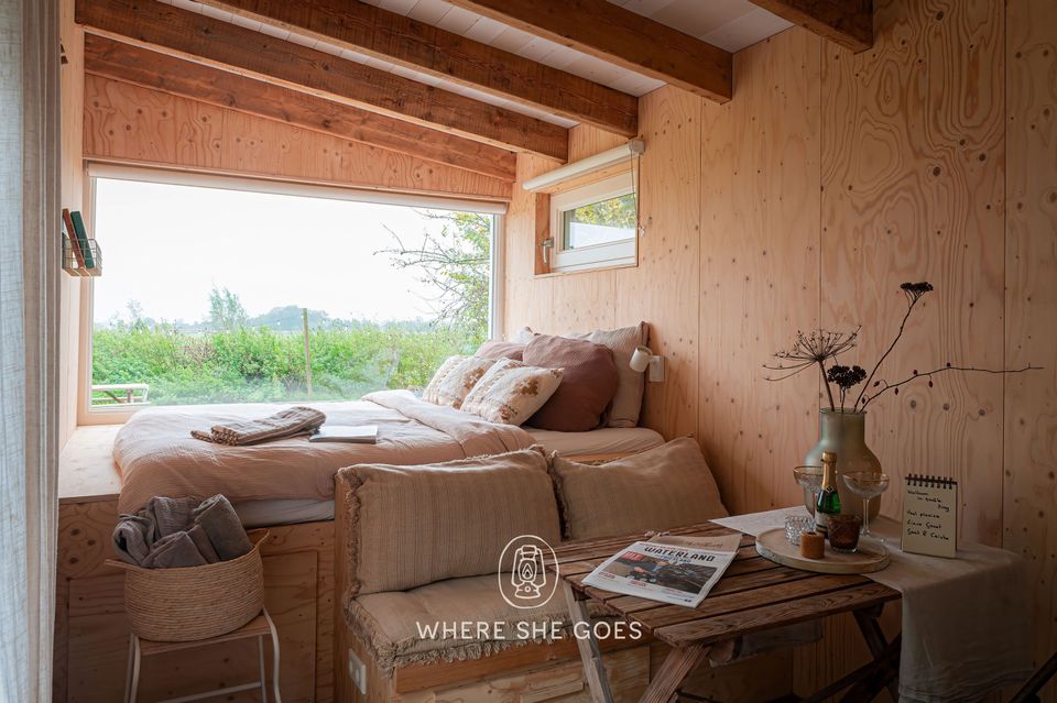 The large window with a view over the meadows helps you to completely relax. Curl up on the terrace with a lovely plaid in front of the wood stove and enjoy being together. Smûk Tiny is a WiFi-free house, which is completely equipped to connect with each other and with yourself. There is a lot to do around the house. You can easily walk with your picnic basket to the Smûk beach, a beautiful piece of grass on the water with lovely beach chairs.