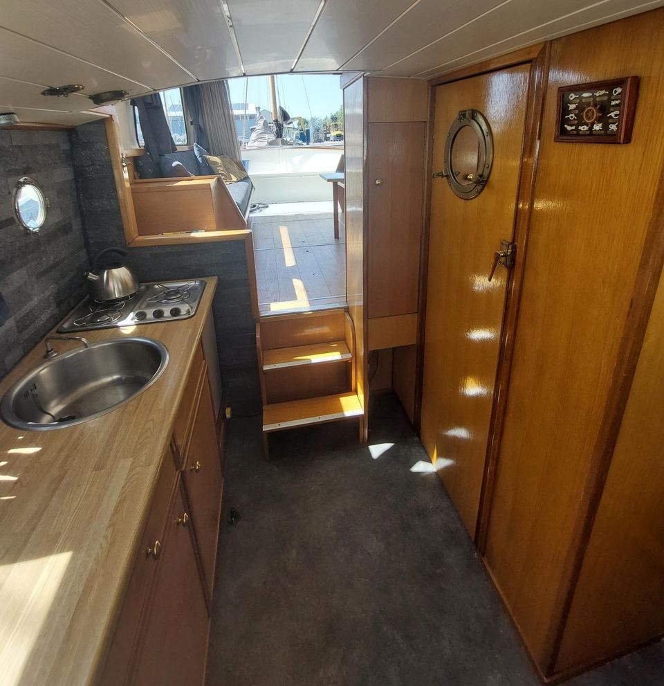 The Crown Cruiser called Winimare, dimensions 9.70 x 3.2 x 1.0 meters, is a beautiful motor yacht with 2 berths. This cruiser has a spacious open cockpit, bow thruster, swimming ladder, electric toilet, solar panel, kitchen and a new (since 2023) double mattress in the tip. With plenty of living space both inside and outside, this is the ideal motor yacht for your boating holiday in the Netherlands.