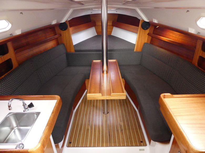 With this modern, spacious family yacht you can sail beautifully in Friesland, the IJsselmeer and the Wadden Sea due to the shallow draft (1.20 m). Interior upgrade and new mattresses in 2021! The mainsail (fast reef) and the Genoa (furling jib) can be operated from the cockpit with the self-tailing winches. Steering is done by means of a tiller. In the cockpit are the speedometer and depth gauge as well as the compass. The cockpit offers space for up to five adults. The gas bottle is safely located outside on the aft deck in the gas well. On board are a VHF radio, radar reflector, lifelines and binoculars. A shower with cold water on the bathing platform and bathing ladder. Docked in a port, you connect the shore power and you have power (220 volts). The cabin of the Dufour 30 Classic has a headroom of 1.80 metres. A spacious seating area that was renovated in 2021, which is also two (extra) sleeping places. The double bed in the tip is extendable. The aft cabin offers sleeping space for two adults, this bed has slatted bases and new luxury mattresses. You must bring your own bed linen, pillows are provided. The hot air heating makes it pleasantly warm on board, even in bad weather. The kitchen is fully equipped with, among other things, sufficient cooking pans, kettle, thermos and complete crockery and kitchen inventory for 4 - 6 people. There is a gas oven and a two burner stove. A deep cool box that retains the temperature for a long time after switching off. The sanitary room has a toilet (manually operated) a sink with cupboard space. There is also a radio-CD player on board. The water charts of Friesland, the IJsselmeer, Wadden Sea (on request) and Almanac are ready on board.