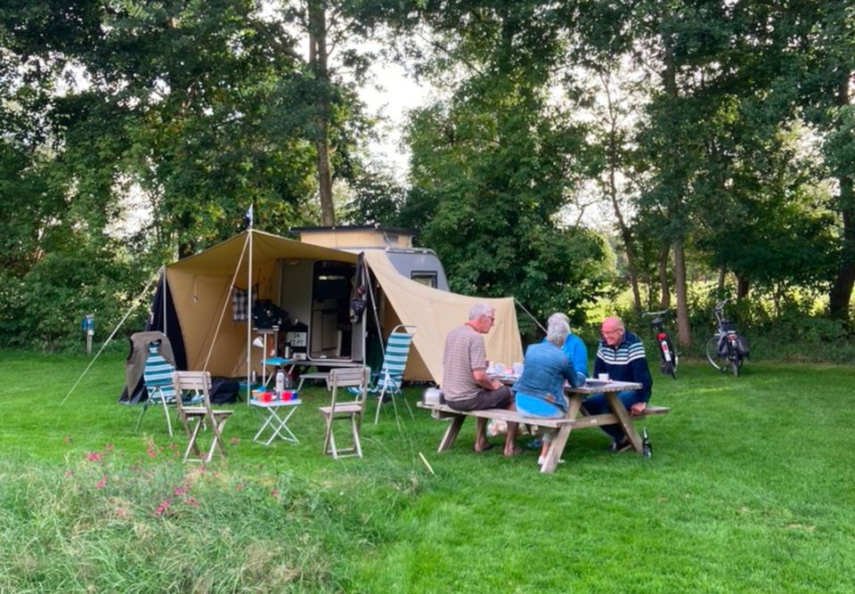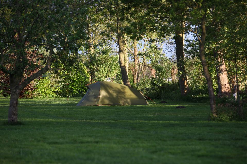 Natuurkampeerterrein Minicamping Singel is a small-scale, quiet campsite in the countryside near Jubbega, in Friesland. The campsite is located behind a former farm and has 25 spacious camping spots, surrounded by fruit trees. You camp here in the green, with a beautiful view over the meadows. The atmosphere is friendly and quiet. There are good sanitary facilities, a small regional shop with tourist information, a cozy tea terrace and a hiker's hut. The entire company is sustainable and environmentally friendly. Showers have heat recovery systems, toilets and washing machines work with rainwater and guests can use a dishwasher free of charge to save drinking water. With these measures, among others, the campsite has the GreenKey Gold certificate. Campers, cyclists and hikers are very welcome. Everything is focused on being outside and enjoying nature.