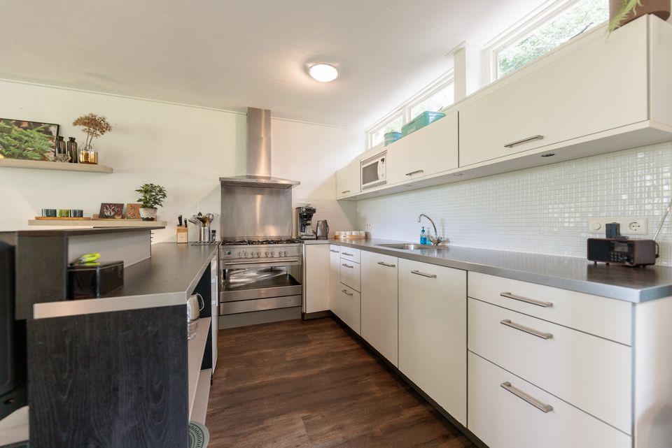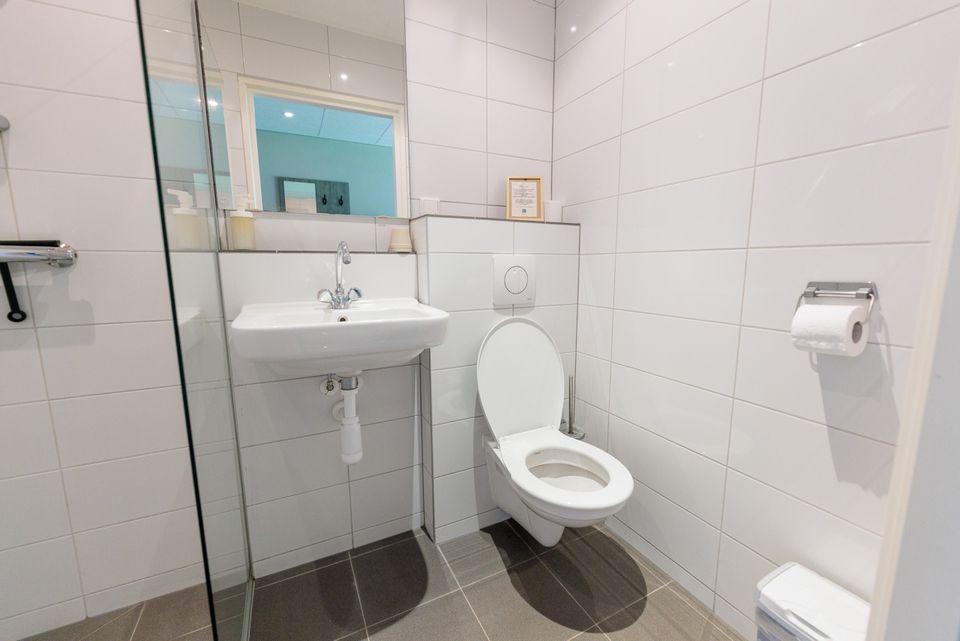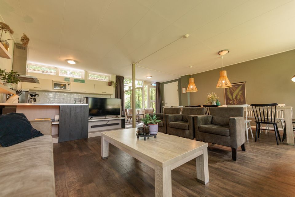 This group accommodation is beautifully situated in the middle of nature on a small fen. The accommodation is located entirely on the ground floor and consists of a long corridor where the eight bedrooms are located. Each bedroom has its own bathroom with shower, toilet and sink. One of the bedrooms is equipped for use by disabled people. In addition, each bedroom has a desk and television. At the end of the hall is the spacious living room with living and dining room and fully equipped kitchen including an oven, dishwasher and refrigerator. The living room has a spacious terrace with cozy seating areas.