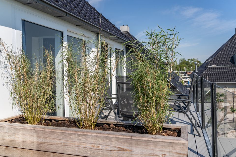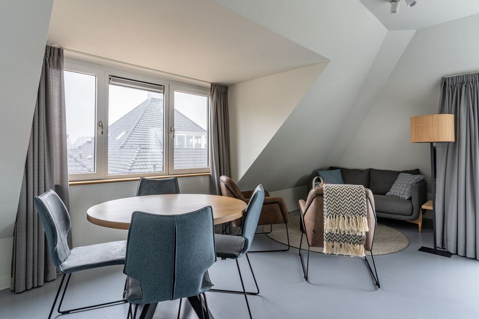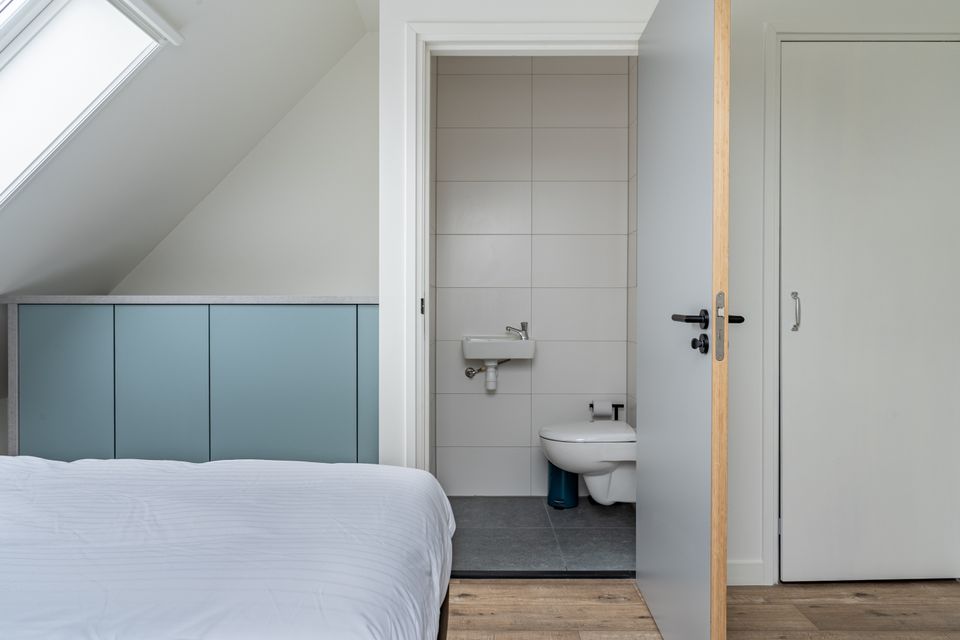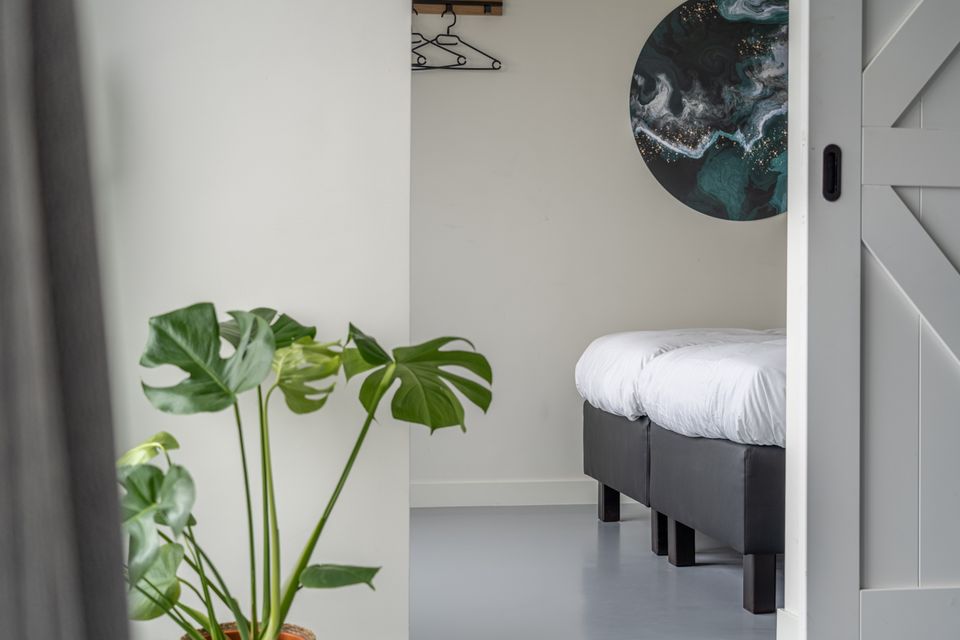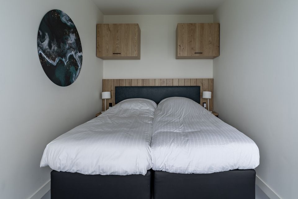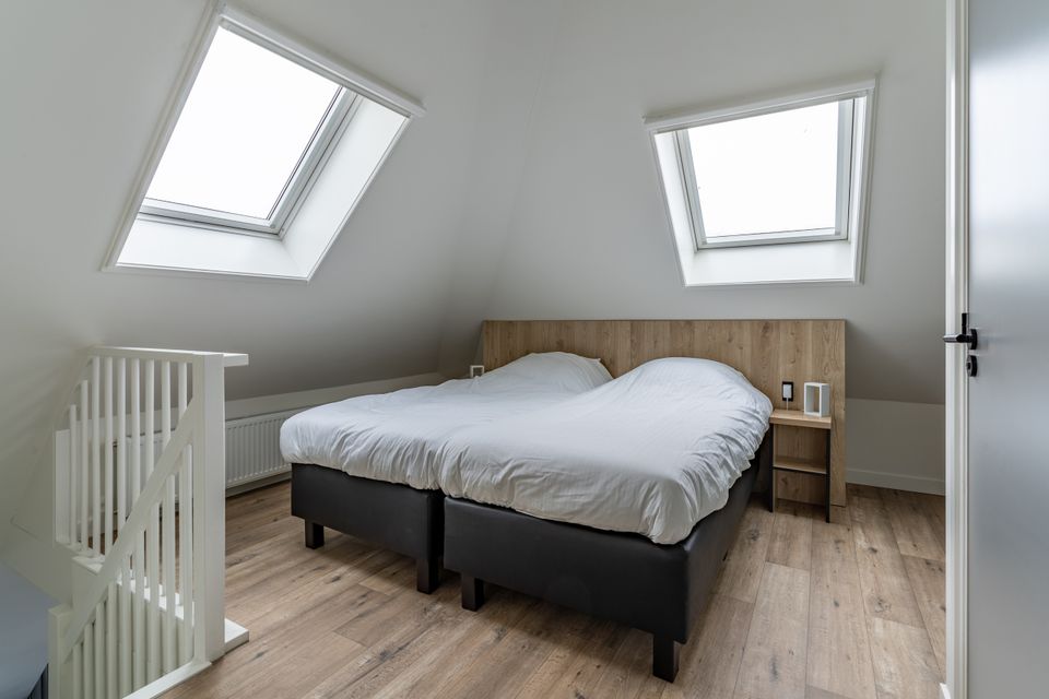 Enjoy a magnificent view of the Sneekermeer from the balcony, equipped with furniture! This four-person apartment is located on the first floor of the complex. Via a fixed staircase you reach the large front door from where you enter the apartment. Upon entering you walk past a bathroom with shower, toilet and sink and past the first bedroom with a beautiful view and two single box-spring beds. Then you step into the open living area with kitchen, dining and sitting area. The kitchen is fully equipped and has a separate refrigerator. There is a spacious dining area and cozy sitting area. Via the stairs you walk upstairs where the second bedroom has been created. This cannot be closed with a door. This bedroom also has two single box-spring beds and you will also find an extra toilet and a washing machine on this floor.
