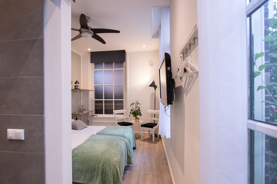 In this beautiful building, just behind the city canal, on the edge of the center of Sneek, you will find this lovely Bed&Breakfast apartment on the ground floor. The room is newly built and tastefully decorated. The room has a double bed or 2 single beds and a bathroom with shower, sink and toilet. Outside in front of the house you can enjoy your cup of coffee or glass of wine (mentioned in characteristics as balcony because it is a small part of the house). If you want to stay with a 3rd/4th or 5th person, ask about the possibilities of renting the entire floor with kitchenette and "living room".