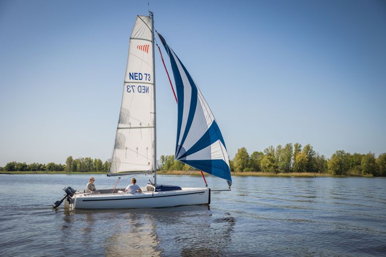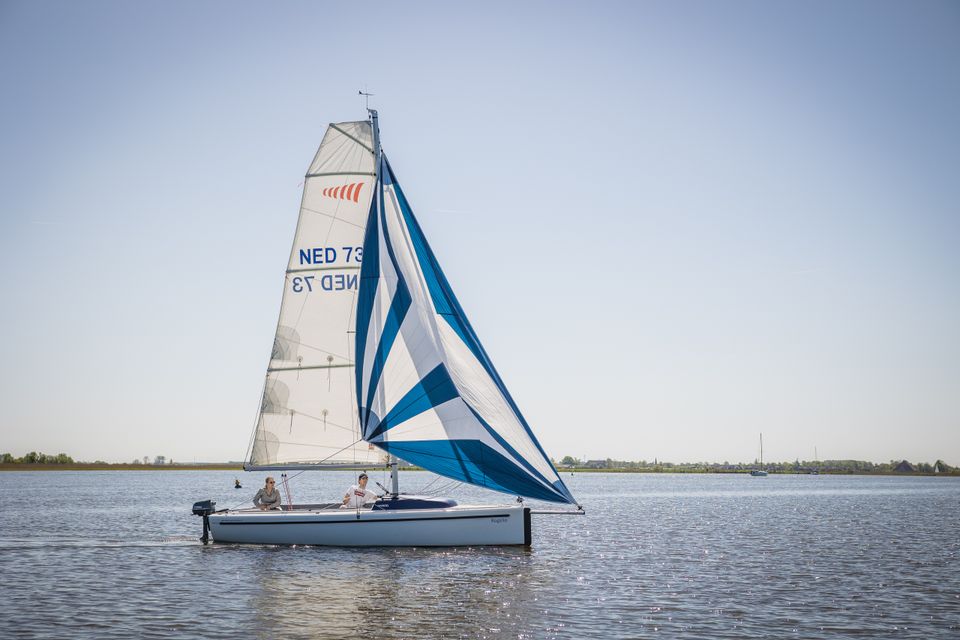 The Aira 22 is a modern, comfortable and sporty open sailing boat. Ideal for a relaxing day of sailing with family or friends on the Frisian lakes. Suitable for up to 6 people. The sailing boat has comfortable benches and cushions in the cockpit for a relaxed sitting position. And also an outboard motor (4 hp). Thanks to the modern rigging and stable construction, the boat is easy to operate, even for less experienced sailors. In low winds you can set up the gennaker, which is easy to roll in and out with the furler.
