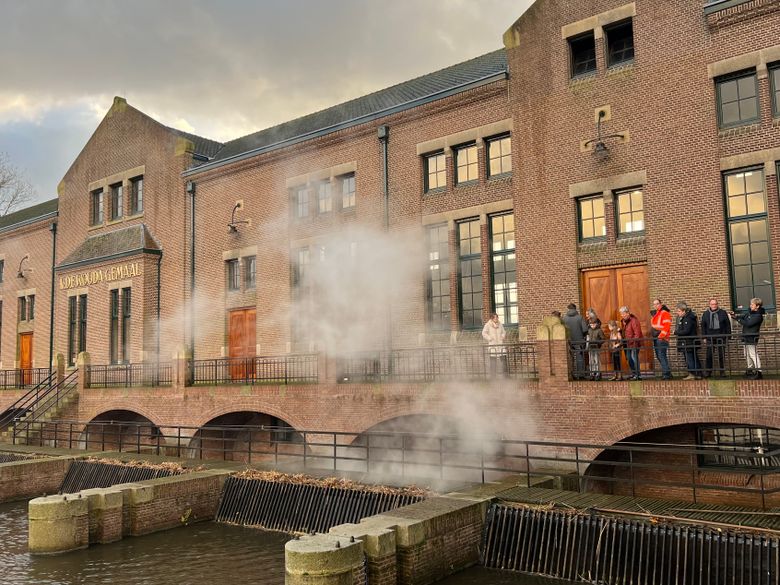 Het Woudagemaal onder stoom om waterstand Friese boezem te verlagen