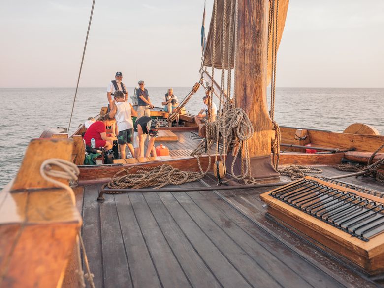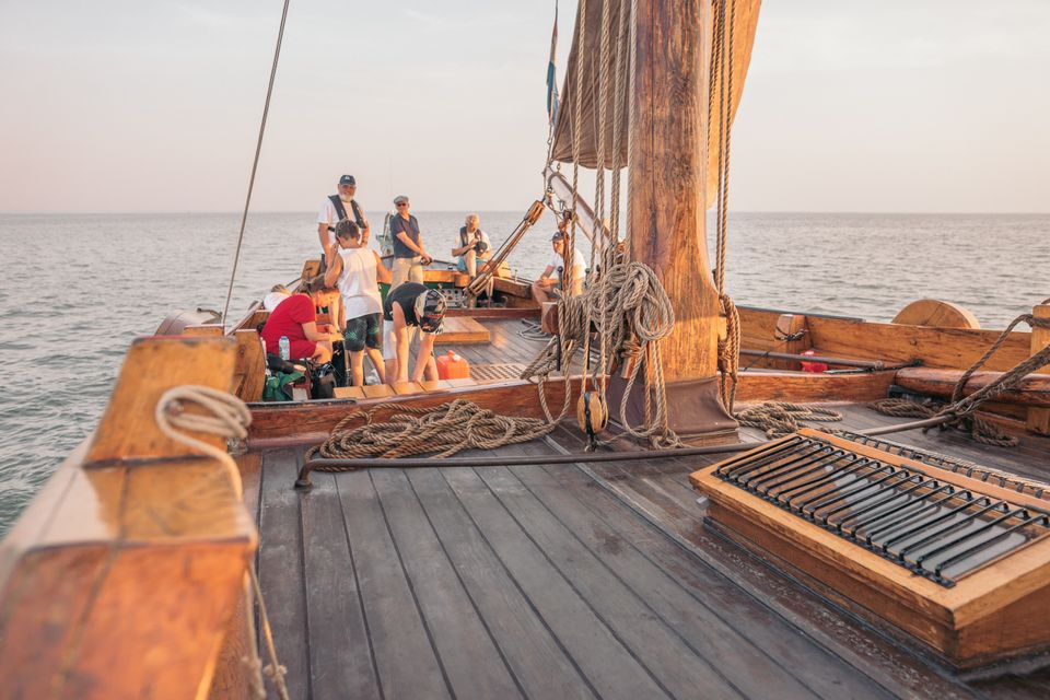 The Blazer TX33 ‘Poolster’ is an authentic wooden fishing vessel from 1918. Much attention is paid to the safety of the ship and those on board. The required statutory safety equipment is on board. The rigging and specific parts of the ship are checked annually.
