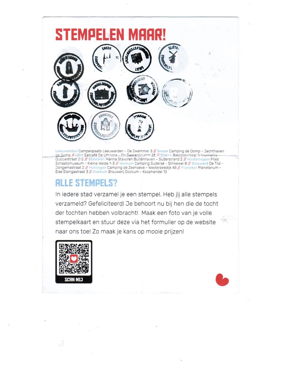 Campers can pick up a stamp card at all eleven stamp posts. The starting point, the starting moment and the duration of the trip can be freely determined by everyone. A stamp can be obtained in every Eleven Cities city. When the stamp card is full, motor home owners have a chance to win great prizes.