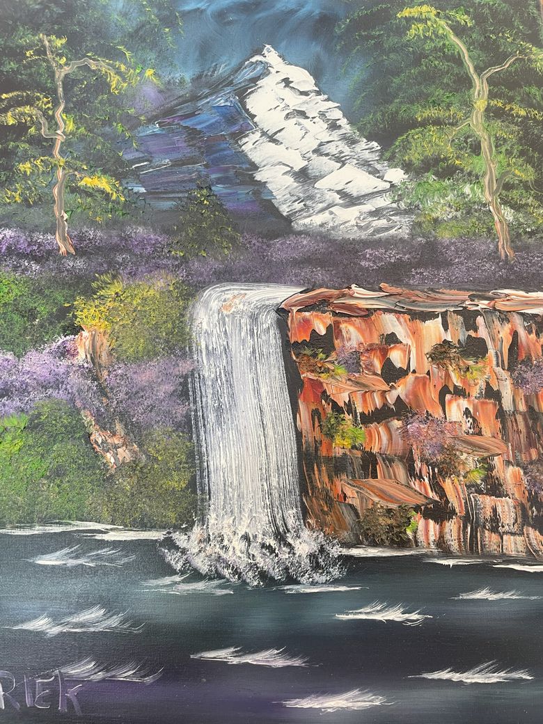 De workshop begint met de basis: het opzetten van de horizon, het spelen met licht en het schilderen van de lucht. Daarna bouw je stap voor stap verder aan bergen, water en bomen. Je krijgt duidelijke en rustige uitleg over het gebruik van kwast, penseel en paletmes, zodat je leert hoe je diepte en textuur in je werk brengt.