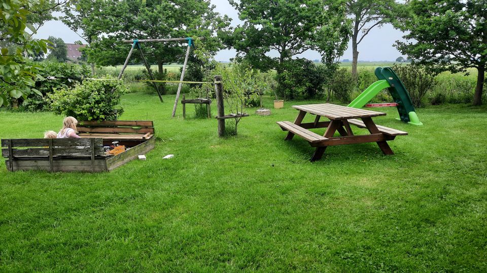 You will find this friendly campsite with fifteen pitches in the middle of the farmlands. In addition to the campsite, a spacious Vrijbuiter tent is also rented and a holiday home has been built in the former farm. There is also a large common room on site with a kitchenette, games and craft supplies. In the summer, ice creams are sold at the campsite! The campsite is child-friendly, there is a playing field with swing, sandbox and small slide, as well as a number of go-karts and pedal tractors. There are also two ponies that you can cuddle or walk with. There are also some small animals walking around, such as ducks, chickens and rabbits.