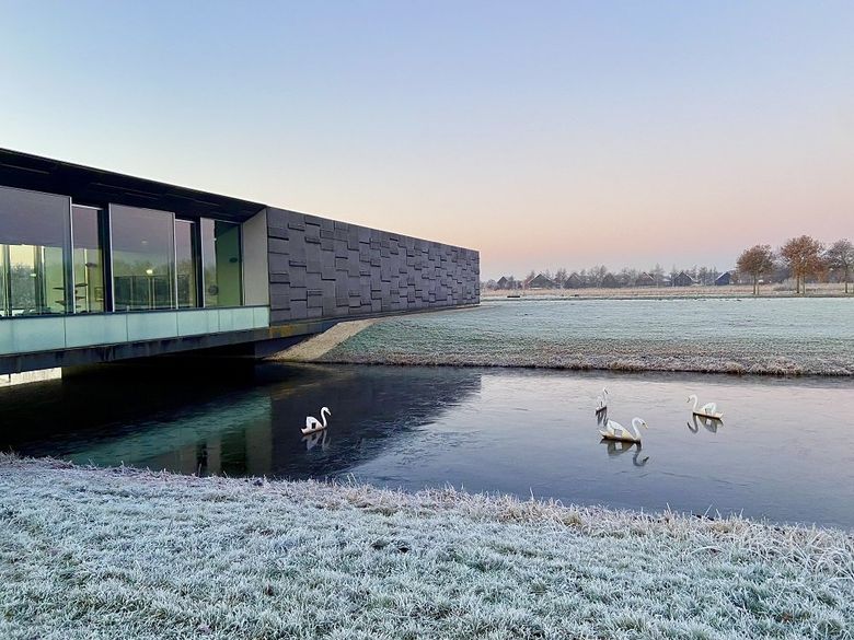 The sleek museum building was designed by Eerde Schippers from Inbo architects in Heerenveen. The building is intrinsically connected with the landscape and the art. The dark basalt façade almost disappears against the trunks of the trees in...