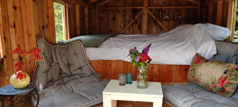 Naast de groepsaccommodatie slaap je in verschillende hutjes verdeeld over het Kleine Paradijs. We hebben twee boomhutten, een rood Kapelletje, twee blokhutten, één tuinark en een ecohuisje. Alle huisjes beschikken over een tweepersoonsbed.