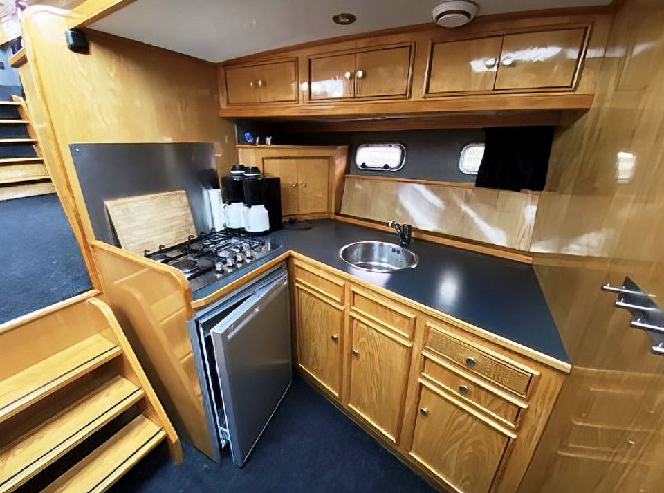 Dit vernieuwde motorjacht van 13.50 meter beschikt over 4 hutten met 8 vaste bedden en een dinette die kan worden omgebouwd tot extra slaapplaatsen, wat het totaal op 10 brengt. De boot is ruim en praktisch ingedeeld, voorzien van moderne gemakken zoals een extra compressorkoelkast in de zithoek, 2 toiletten, een TV met satellietontvanger en WiFi. Deze boot is ideaal om de Friese steden te verkennen of om in de natuur voor anker te gaan. Perfect voor ervaren sloepvaarders die een stap verder willen. Ook bij minder goed weer is het aangenaam verblijven aan boord.