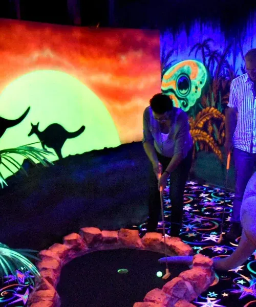 Ek binnen giet it troch. LED-bowlen, lasergame, glow in the dark minigolf en in klimmuorre soargje foar beweging. Foar jong en âld, foar wa’t tegearre op paad giet of syn eigen wei kiest.
