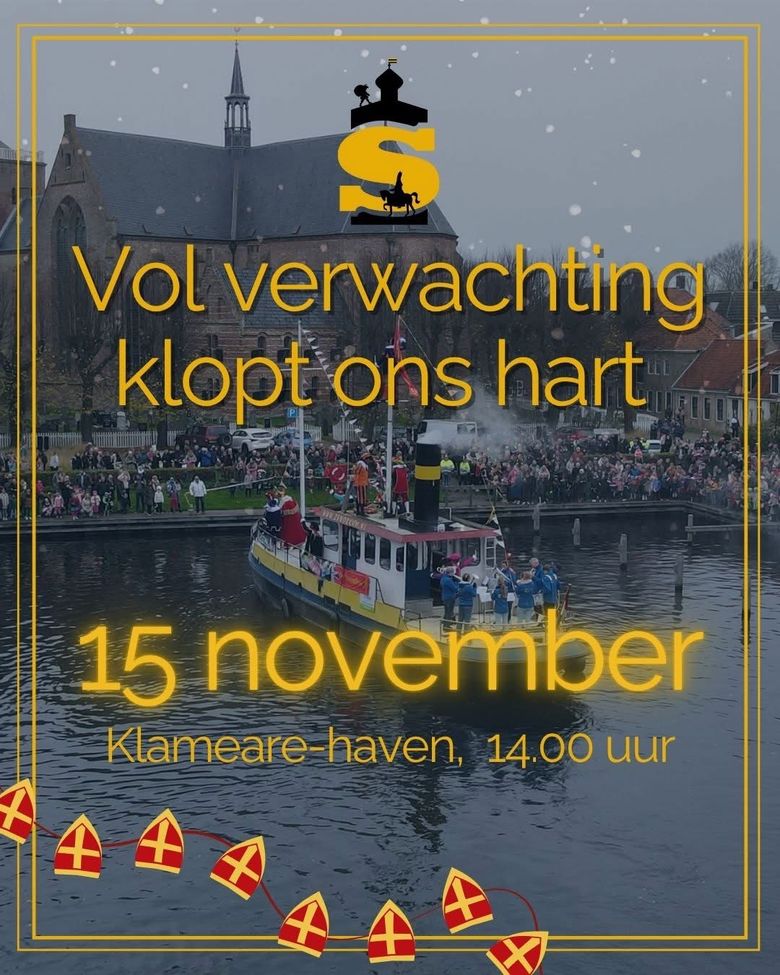 Op zaterdag 15 november om 14.00 uur komt Sinterklaas aan in de Klamearehaven in Workum. Kom kijken, zingen en zwaaien terwijl de Sint en zijn Pieten feestelijk worden ontvangen!