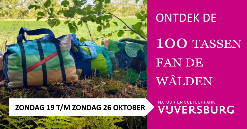 Wat begon met één tas, groeide uit tot een kleurrijke uitdaging: zou het lukken om minstens 100 tassen te maken allemaal geïnspireerd op de Wâlden? Het antwoord is te zien tijdens de herfstvakantie in het park. Want dan kunnen alle tassen worden bewonderd. Tassen gemaakt met uiteenlopende technieken, materialen en verhalen komen samen in één expositie. De tassen stralen niet alleen creativiteit en vakmanschap uit, maar ook verbondenheid met de Wâlden, met hergebruik en duurzaamheid en met elkaar.