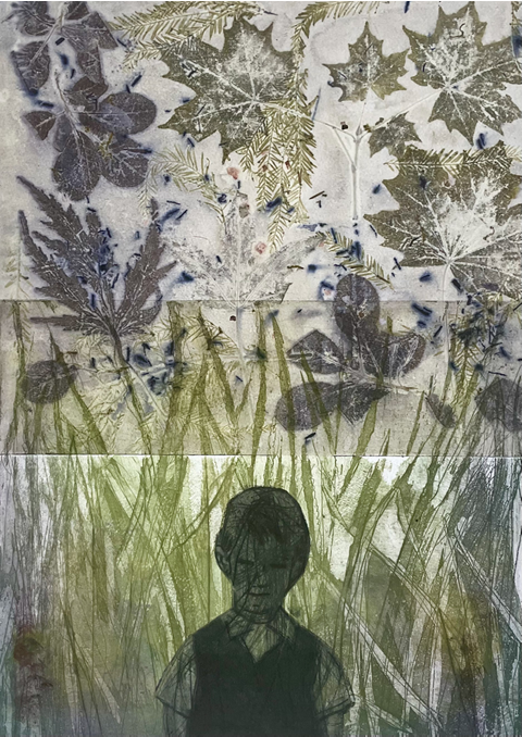 Voor deze tentoonstelling toont Joke Stapensea nieuw werk waarin stinsenplanten, zoals de gele bostulp, blauwe anemoon en het sneeuwklokje, zijn verweven met personages uit oude foto’s en ecoprints. Door het gebruik van verschillende grafische technieken – waaronder ets, droge naald, aquatint en ecoprint – ontstaan transparante, gelaagde beelden waarin natuur en verleden elkaar raken.