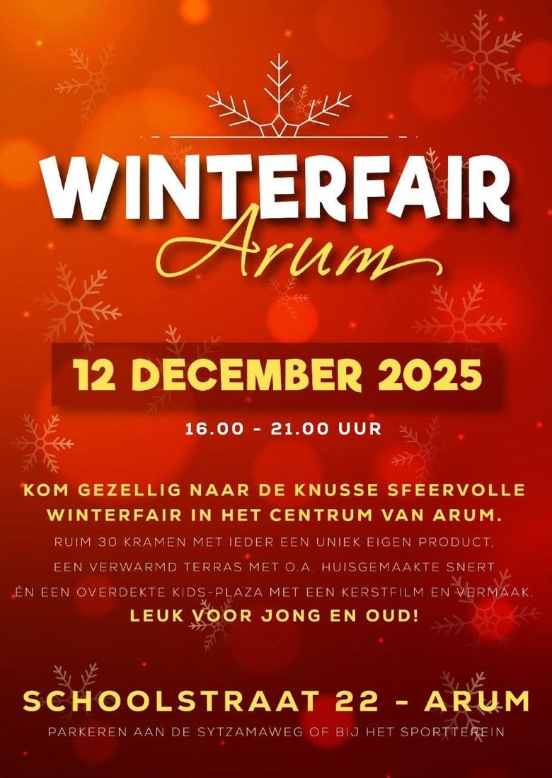 Kom naar de sfeervolle gezellige winterfair in Arum! Ruim 30 kramen met ieder een eigen unieke product.