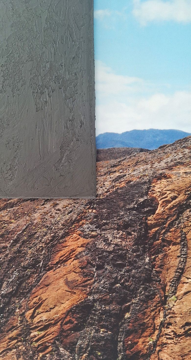 De blauwe baan die over de vloer van Afslag BLV loopt, verbindt de drie zalen in de ruimte met elkaar. Deze lijn, die bezoekers als het ware door de ruimte leidt, vormt het uitgangspunt voor de installatie 'And the blue that binds it all together' (2025) Daarmee ontstaat een speels element dat de ruimte openbreekt en visuele ruis wegneemt. De aanwezigheid van de blauwe kleur sluit aan bij de werken uit de serie 'To Move Mountains' en versterkt de visuele samenhang, waardoor de afzonderlijke werken zich nog nadrukkelijker als één geheel presenteren.
