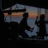We varen in het donker over de Waddenzee, terwijl sterrendeskundige Koen van den Driesse vertelt over de hemel, waar die avond Saturnus en de maan samen boven de horizon staan.