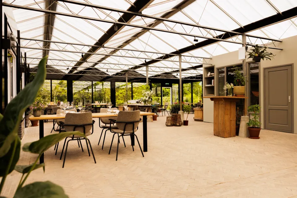 Hier zit je aan tafel tussen de tomaten, komkommers en bloemen. In de kas, omringd door pluktuin, voedselbos en moestuin. Je ziet waar je eten groeit en kunt soms zelfs meehelpen met oogsten. Bekroond met een groene Michelin ster wordt een bezoek aan dit restaurant gegarandeerd een culinaire beleving.