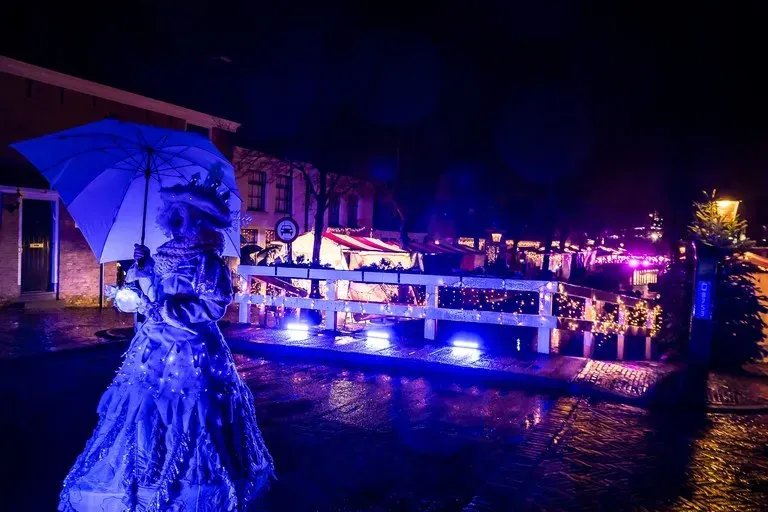 Dokkum verandert in een winterse stad vol licht en sfeer. Meer dan 100 kramen vullen de binnenstad met kerst- en winterse vondsten. Straatacts lopen rond, livemuziek klinkt vanaf de namiddag in de Grote Kerk en de St. Bonifatiuskerk, en Joris’ kerstboom staat weer klaar. De drie foodlocaties liggen verspreid door de stad en maken het makkelijk om iets warms mee te pakken.